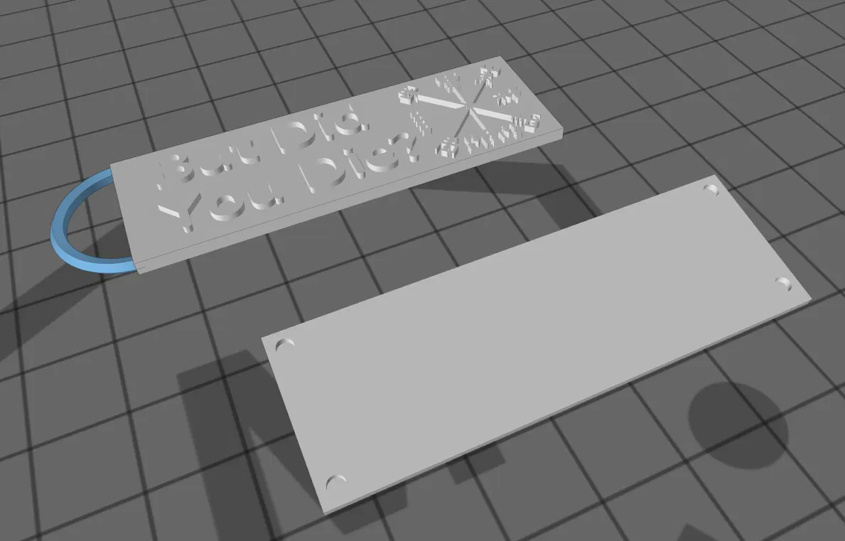 Chỉ là một cái huy hiệu nhỏ với câu cửa miệng yêu thích của tui nè. Chắc in bằng PETG hoặc vật liệu cứng hơn là ngon nhất.