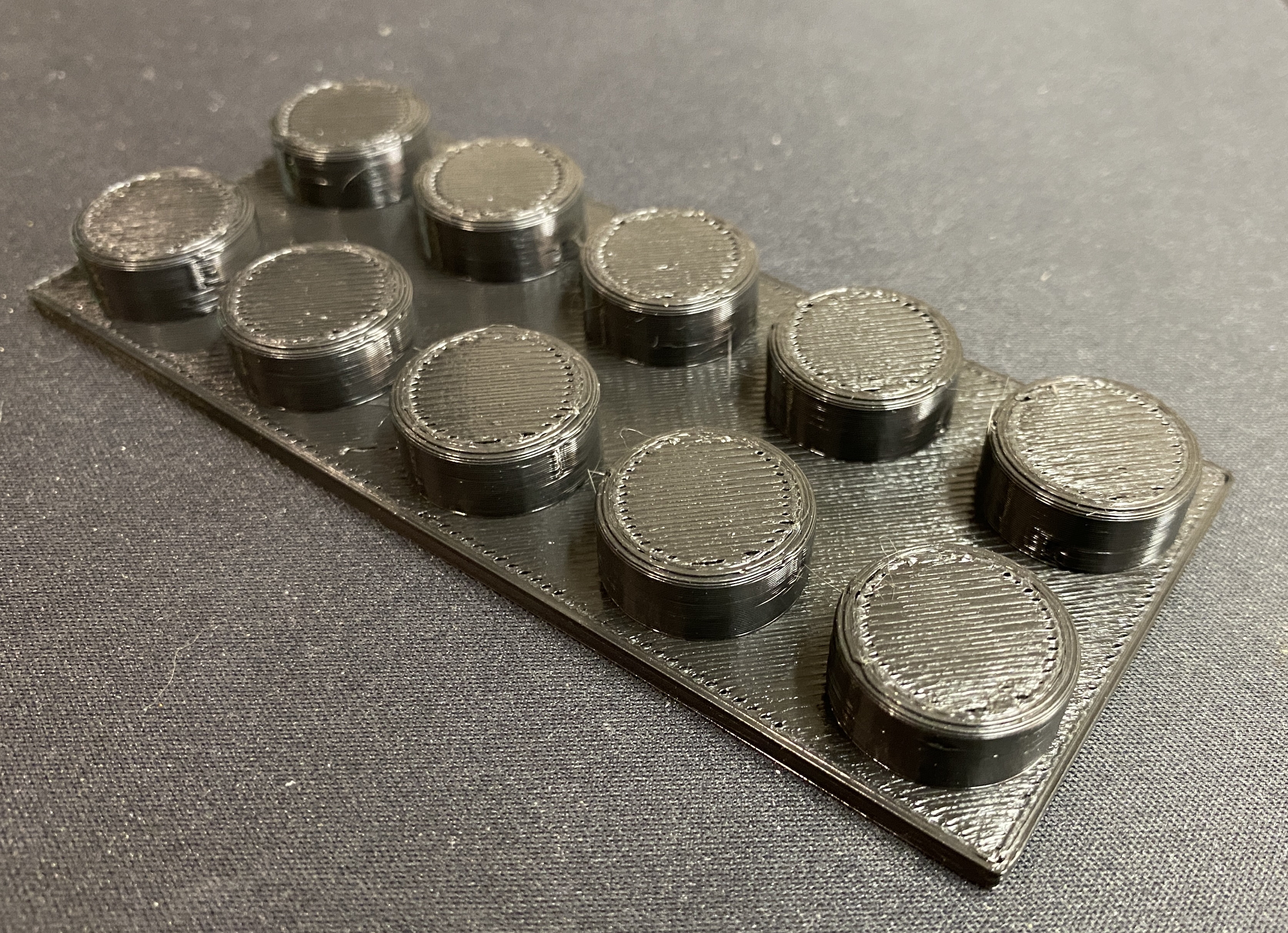 Giá này giữ được 10 đầu nozzle cho trạm khò nóng 858D. Thiết kế để gắn lên mặt trên của 858D bằng 2 nam châm 2x6mm, lắp vào các lỗ ở mặt dưới rồi dán keo cố định. Các gờ tròn có đường kính 20.5mm. Mình in bằng PLA, layer height 0.35 và không cần supports.