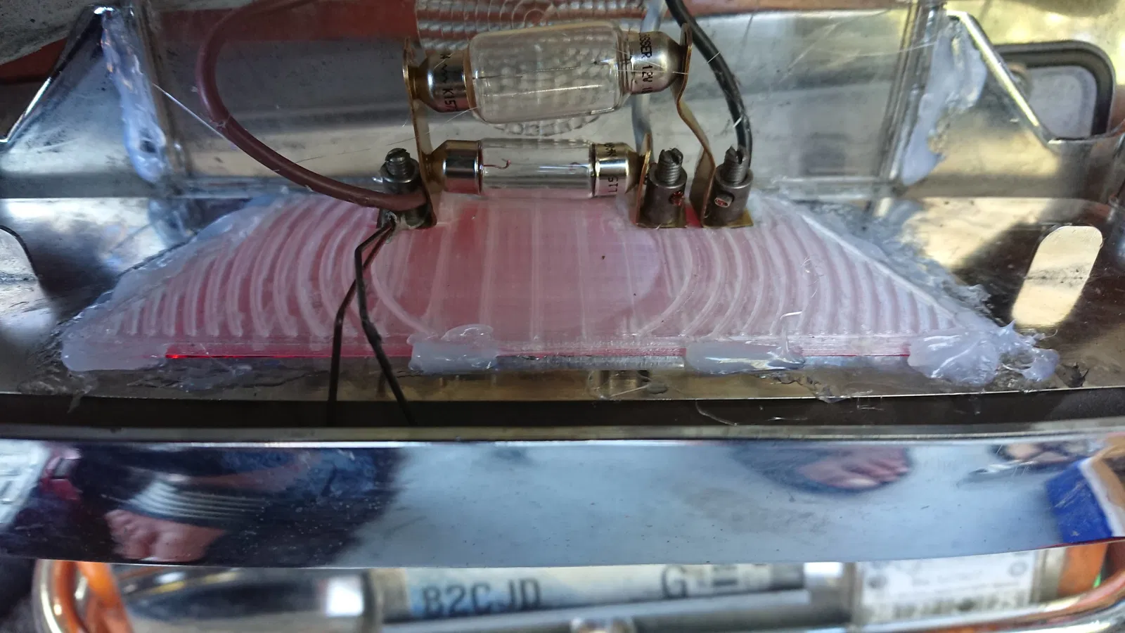 Mình không làm lại đúng chuẩn thấu kính Fresnel “xịn” hoàn toàn, nhưng nhìn thì mình không thấy khác biệt. Mình dán thấu kính vào đèn hậu bằng rất nhiều keo nến/keo nóng (tạm thời vẫn đang bám tốt).