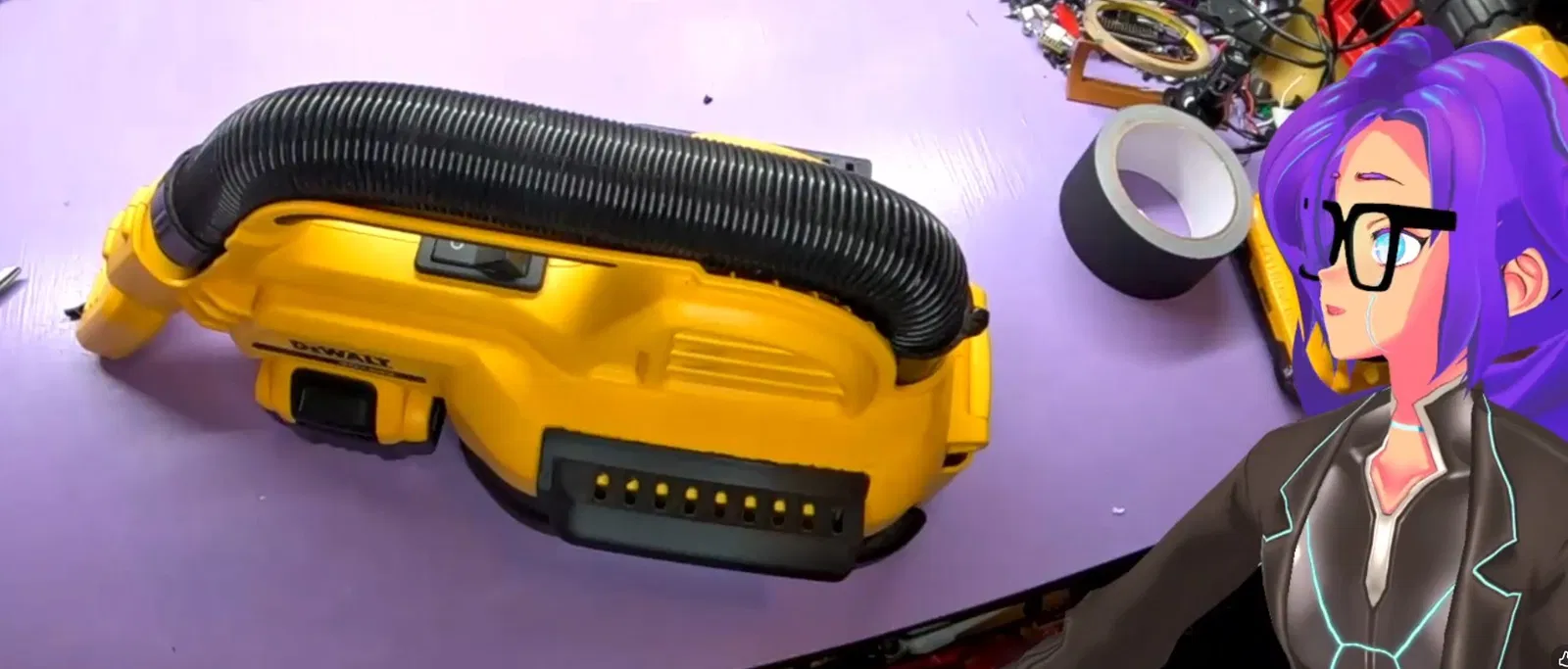 Mình không thích cái DeWalt DCV517 thổi gió xả ra hai bên hông, nên mình làm một món để chuyển hướng luồng thoát gió lên trên và ra phía sau.