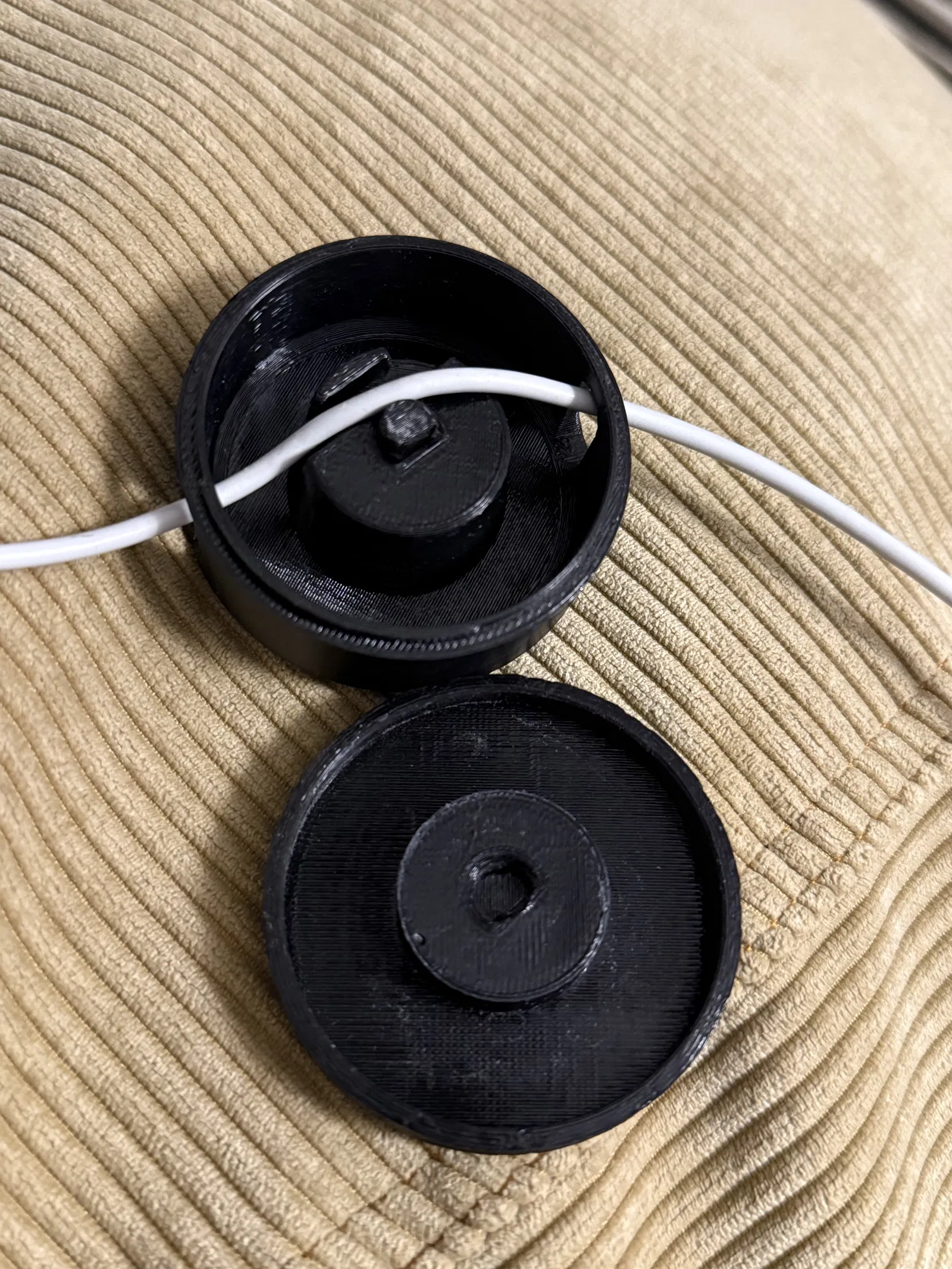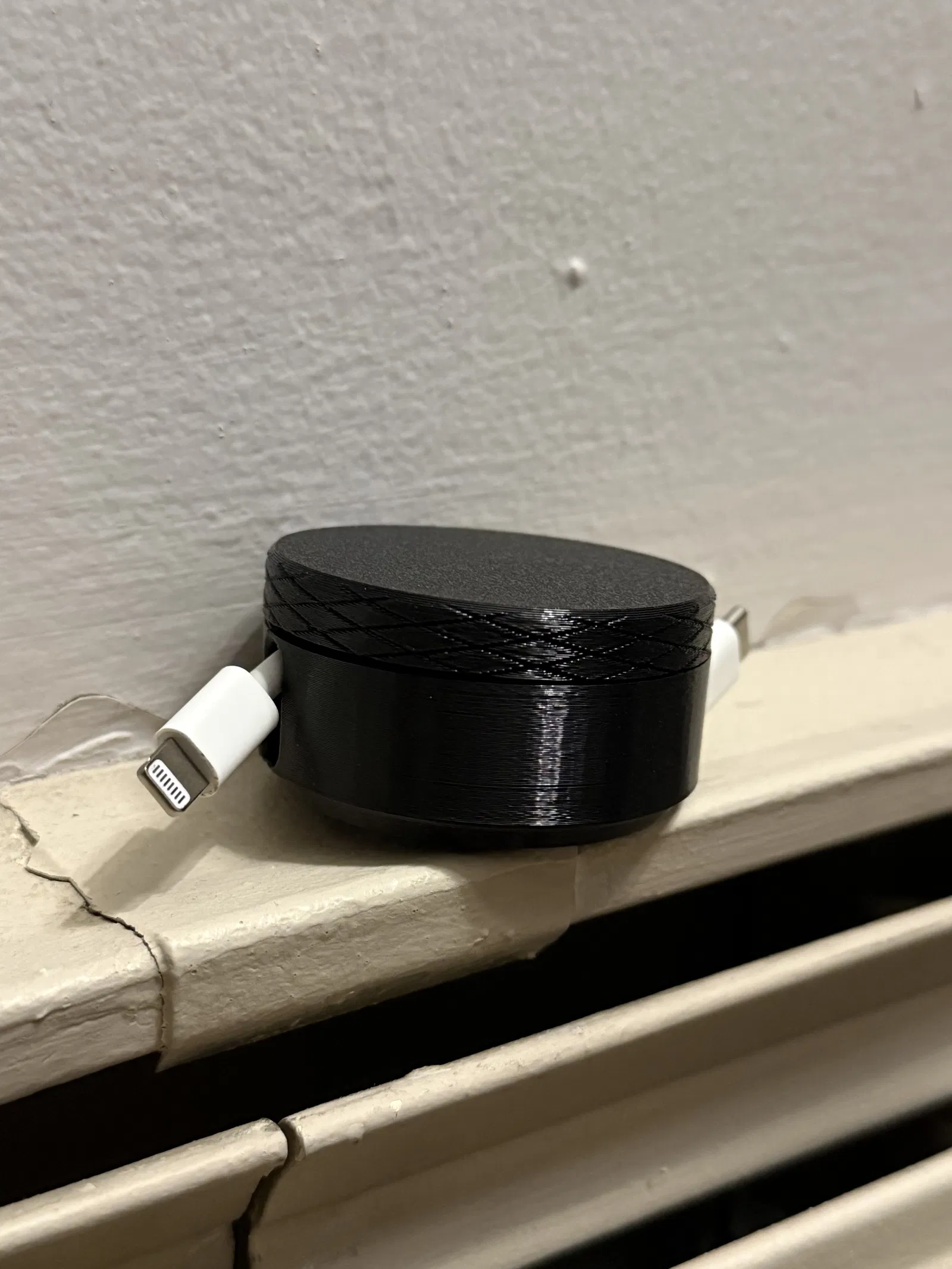 Puck giữ và sắp xếp dây cáp gọn gàng khi mang đi. Có vài khúc bẻ cong khá gắt nên không hợp với cáp quá mong manh; dùng ổn hơn với cáp bọc dù (woven). Phù hợp để bỏ vào túi đồ du lịch.