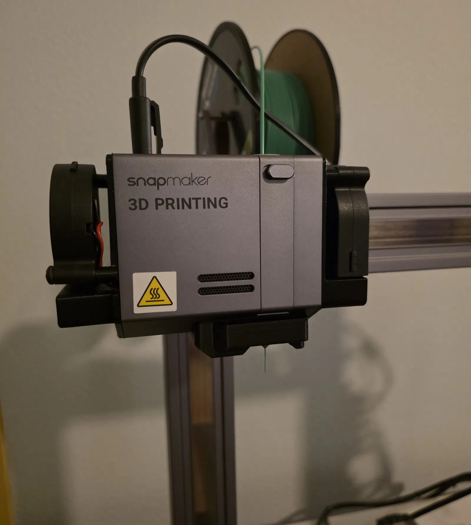 Tui không hài lòng với cái quạt tản nhiệt linh kiện 25mm .10ma yếu xì nằm trong cái Snapmaker 2.0, nên tui đã chế ra cái mod kiểu "Walrus Fan" hay là làm mát hai bên song song với hai cái quạt. Mấy cái mod kiểu này có sẵn cho mấy cái máy in cũ xì như Wanhao Duplicator i3 plus rồi, vậy sao cái Snapmaker, một cái máy in hiện đại hơn nhiều mà lại bị chậm tốc độ in nói chung, lại không có chứ?