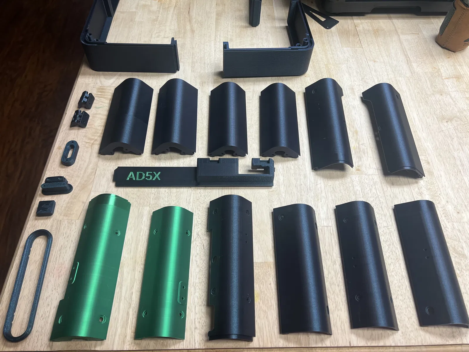 Bộ enclosure custom cho FlashForge AD5X này có thiết kế gọn gàng, thiên về công năng, hoàn thiện màu Galaxy Black và nhấn bằng các mảng inlay Green Silk Matte để tạo độ tương phản nhẹ và chiều sâu. Bản dựng tập trung vào độ bền và cân đối thị giác, đồng thời giữ cảm giác sạch sẽ như hàng “zin” từ nhà máy. Toàn bộ enclosure mất khoảng 24 giờ để hoàn thành, bao gồm một vài tinh chỉnh nhỏ trong lúc lắp ráp nhằm cải thiện độ khít và canh thẳng. Tất cả chi tiết đều được in và lắp bằng thiết bị FlashForge, đảm bảo tương thích hoàn toàn và đồng nhất xuyên suốt. Được thiết kế như một enclosure nền tảng chắc chắn, phiên bản này tạo tiền đề tốt cho các tùy biến về sau mà vẫn giữ vẻ ngoài gọn, chuyên nghiệp ngay từ khi hoàn thiện.