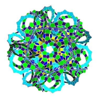 Một polylink hình khối mười hai mặt (dodecahedral) được fused (liền khối), lấy cảm hứng từ BM Stewart.