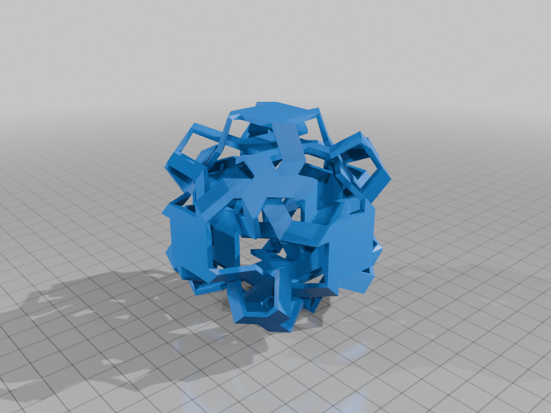 Mẫu polyknot mang đối xứng cuboctahedral, được lấy cảm hứng từ nghệ sĩ Rinus Roelofs. Phù hợp để in 3D trưng bày, khám phá hình học, topology và math art.
