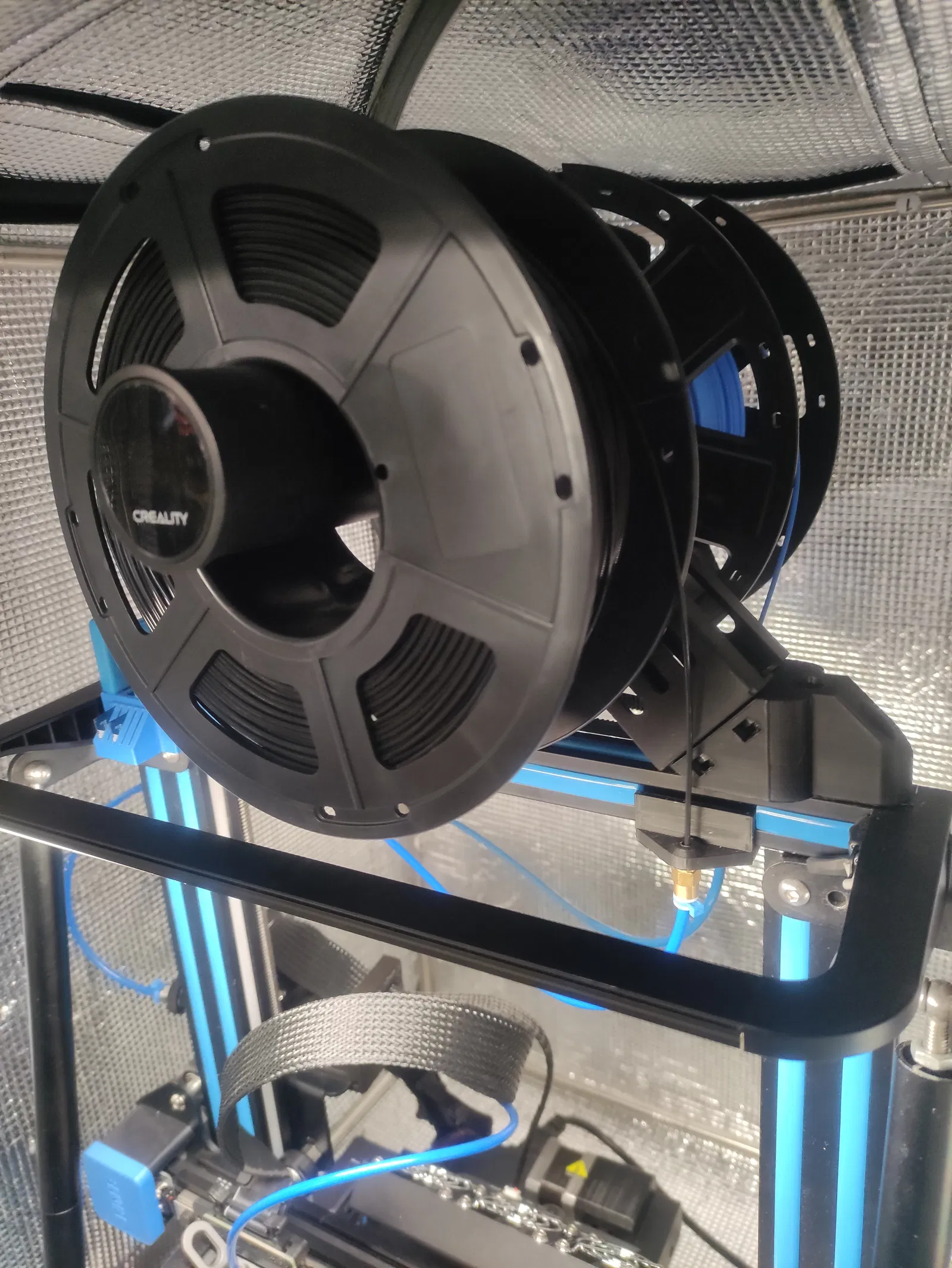 Support double bobine góc 45 độ. Phần mình thì mình gắn nó lên Ender 3 V2 Creality, dùng kèm với giá treo bobine nguyên bản nhưng làm dạng double để bobine của mình đặt vừa trong box vải mà không bị chạm vào nhau.