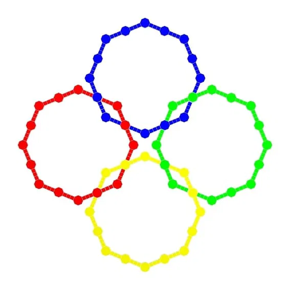 Một Brunnian link có thể “đi vòng” (walkable), lấy cảm hứng từ các nghệ sĩ Robert Fathauer và MC Escher.