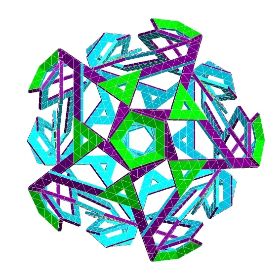 Mẫu đa diện dạng “elevation” lấy cảm hứng từ Leonardo da Vinci, phù hợp cho các dự án Math Art, trưng bày nghệ thuật hoặc học hình học. Thiết kế mang tính điêu khắc, nhìn lạ mắt và hiện đại.