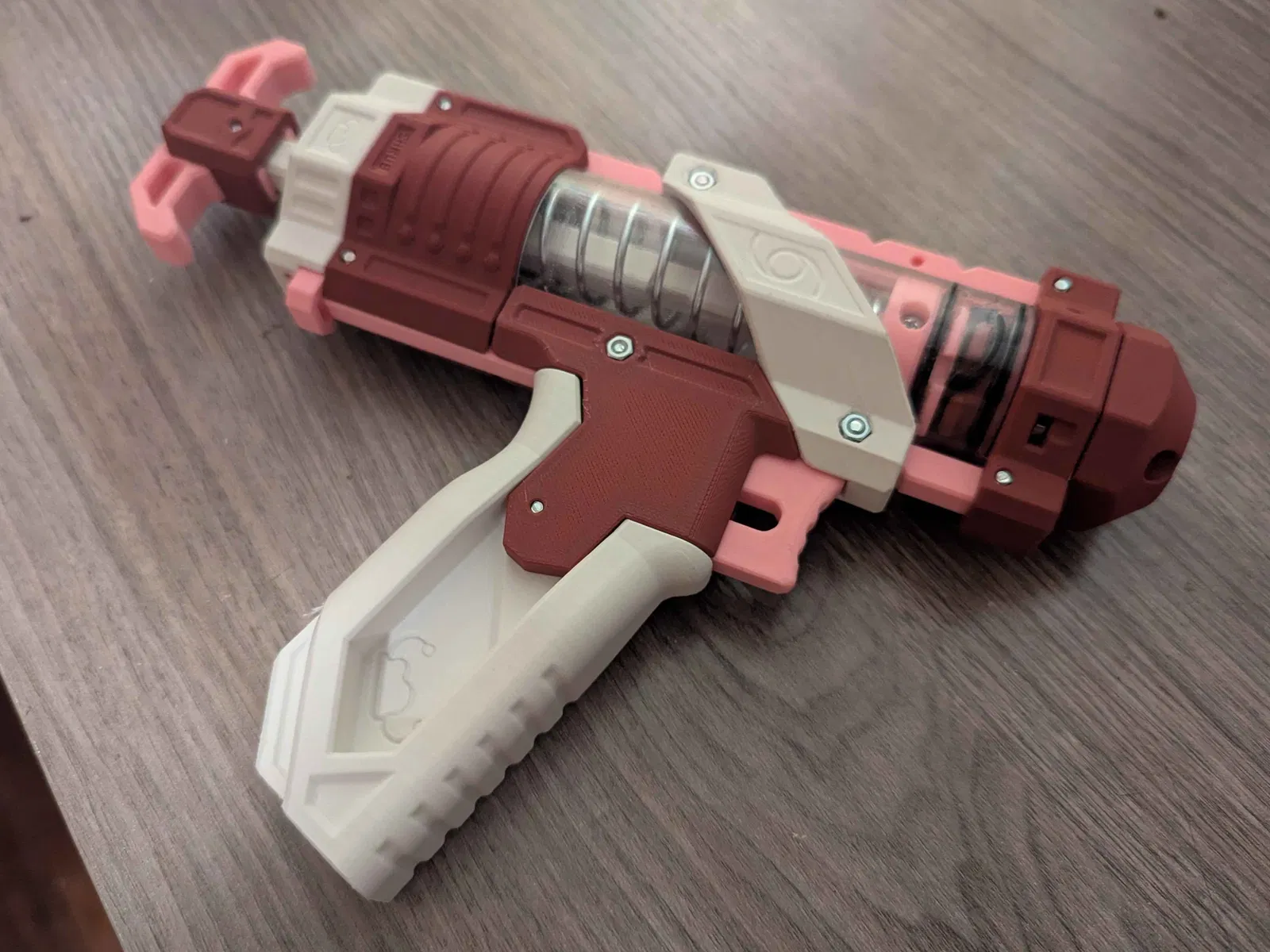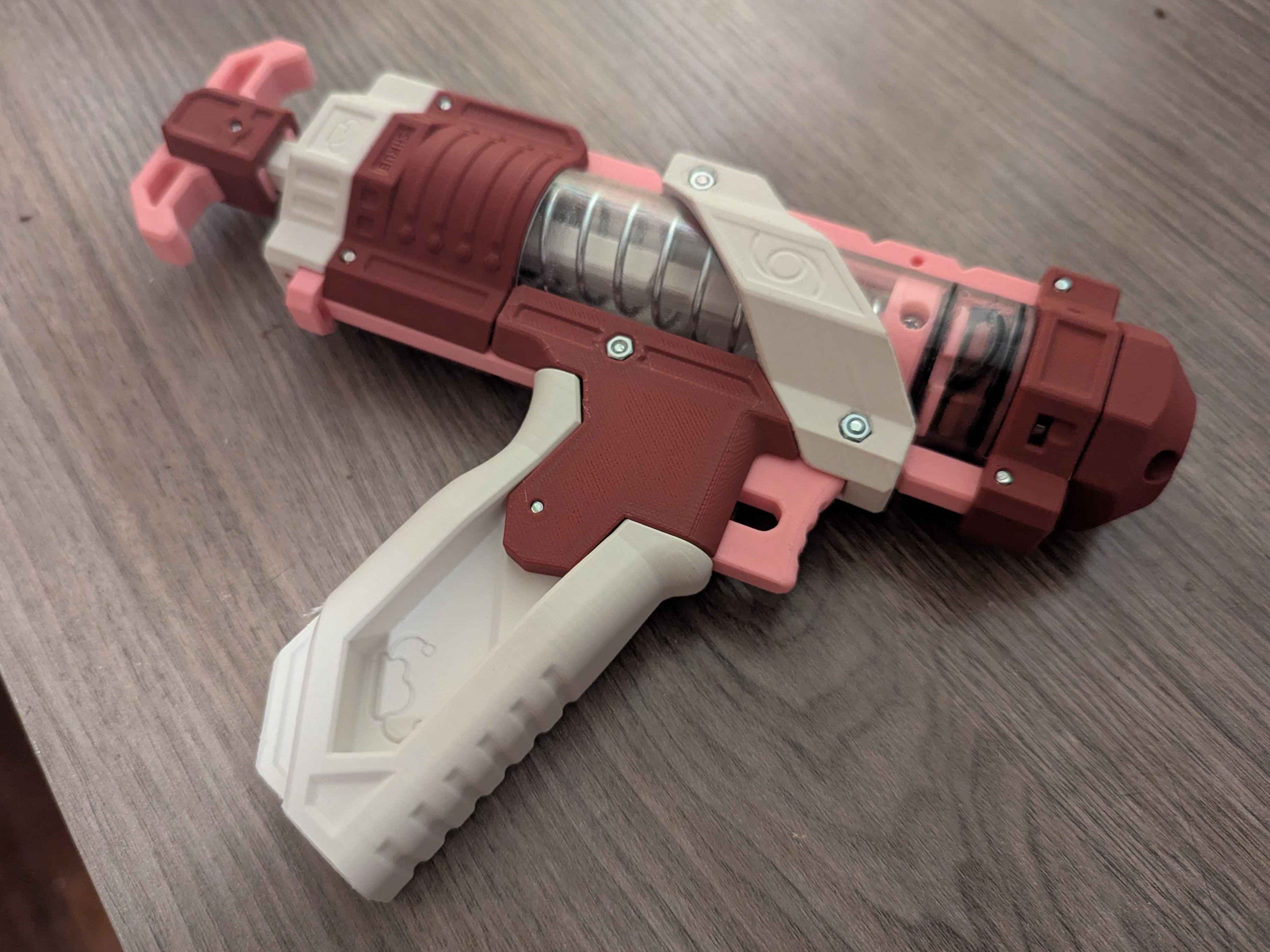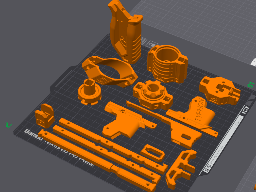 Blaster này phụ thuộc nhiều vào độ bền của các chi tiết in phẳng (continuous flat-printed parts). Vì vậy mình không khuyến khích dùng filament có phụ gia (như silk filament) vì sẽ làm giảm độ bền chi tiết.