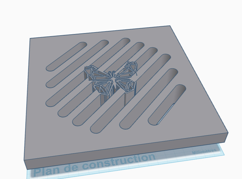 Mẫu grille papillon cho égout dùng cho regard 20x20 cm. Kích thước lưới 19,5 x 19,5 cm, cao 3 cm. Có thể tùy chỉnh kích thước/thiết kế để hợp với nhu cầu lắp đặt và mục đích sử dụng.