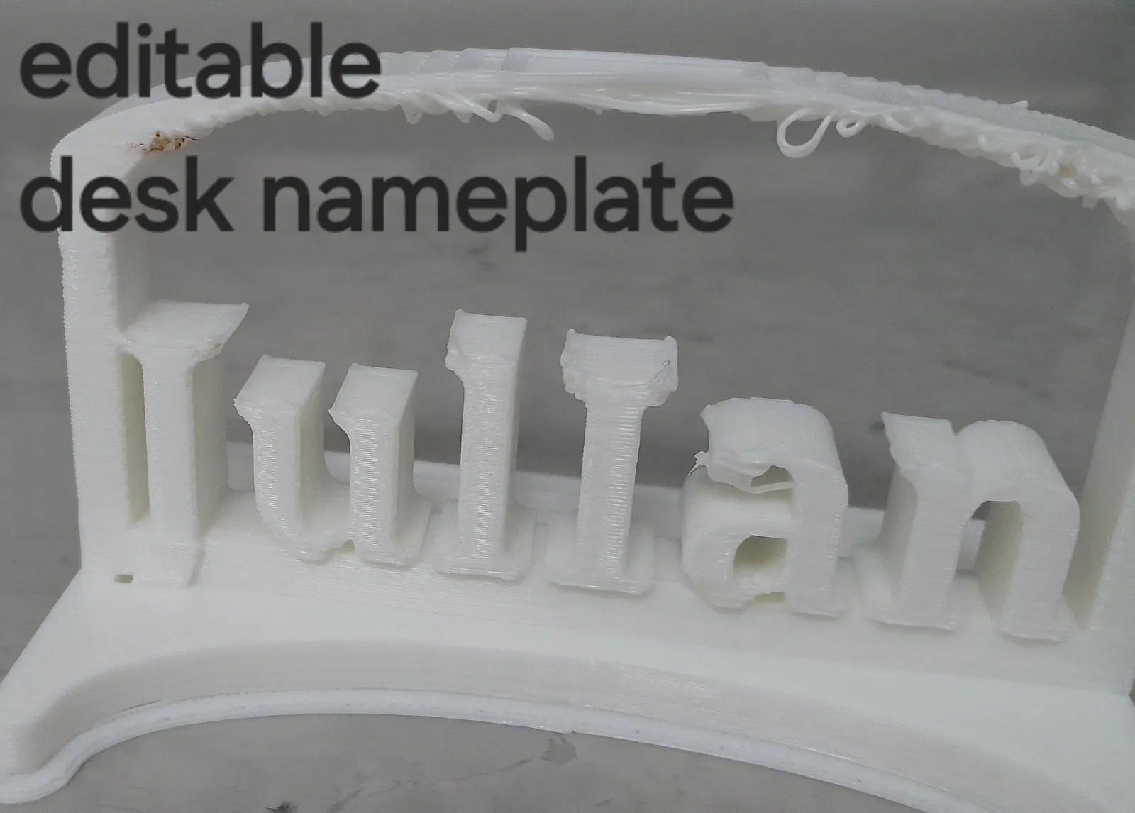 Mẫu được tối ưu để in siêu dễ, rất hợp cho người mới bắt đầu. Tùy theo độ dài tên và máy in 3D của bạn thì sẽ mất khoảng 3 đến 4 tiếng.