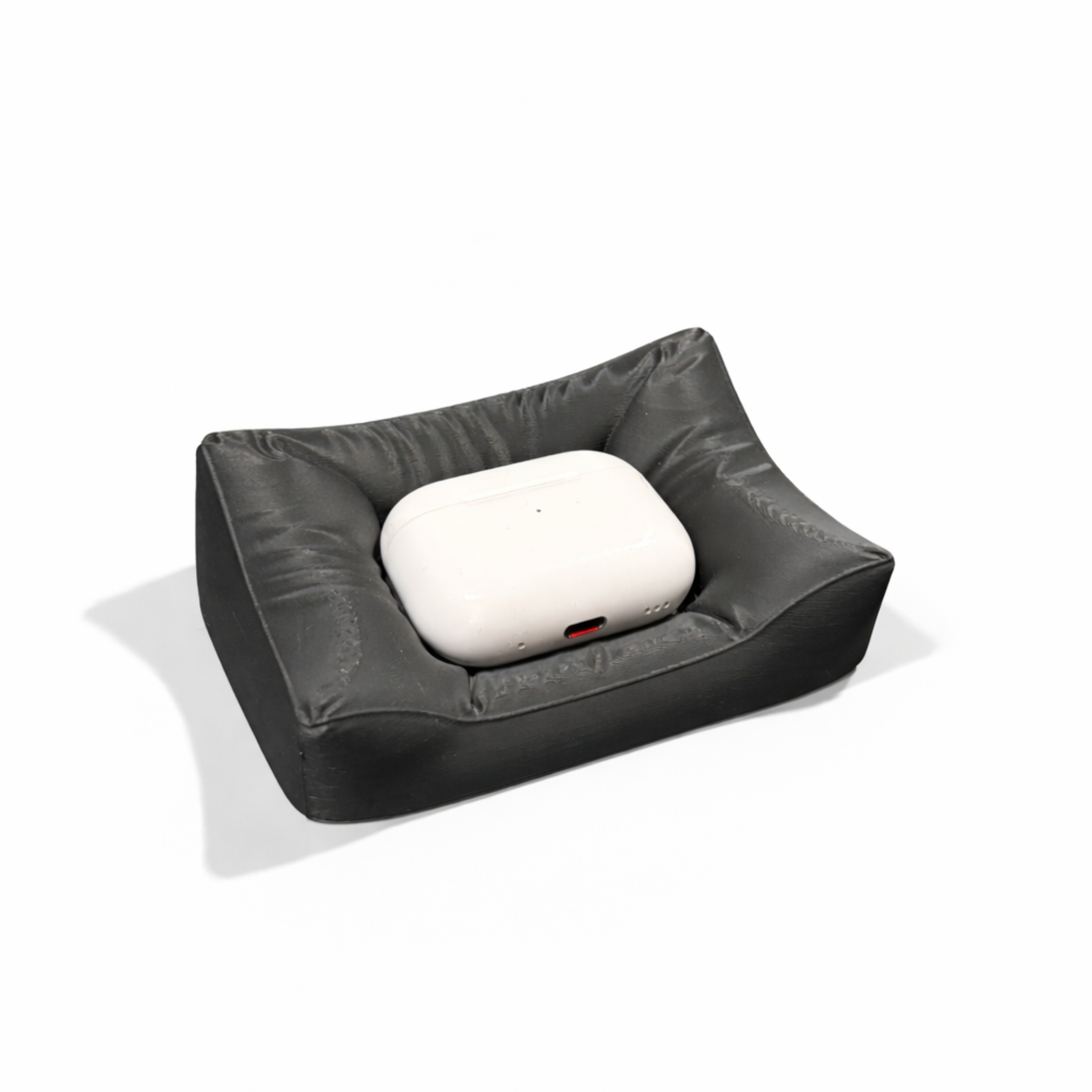 AirPod Couch là một món phụ kiện để bàn vừa vui mắt vừa gọn gàng, cho hộp AirPods của bạn một chỗ đặt mềm mại, ấm cúng – lấy cảm hứng từ thiết kế nội thất thật.