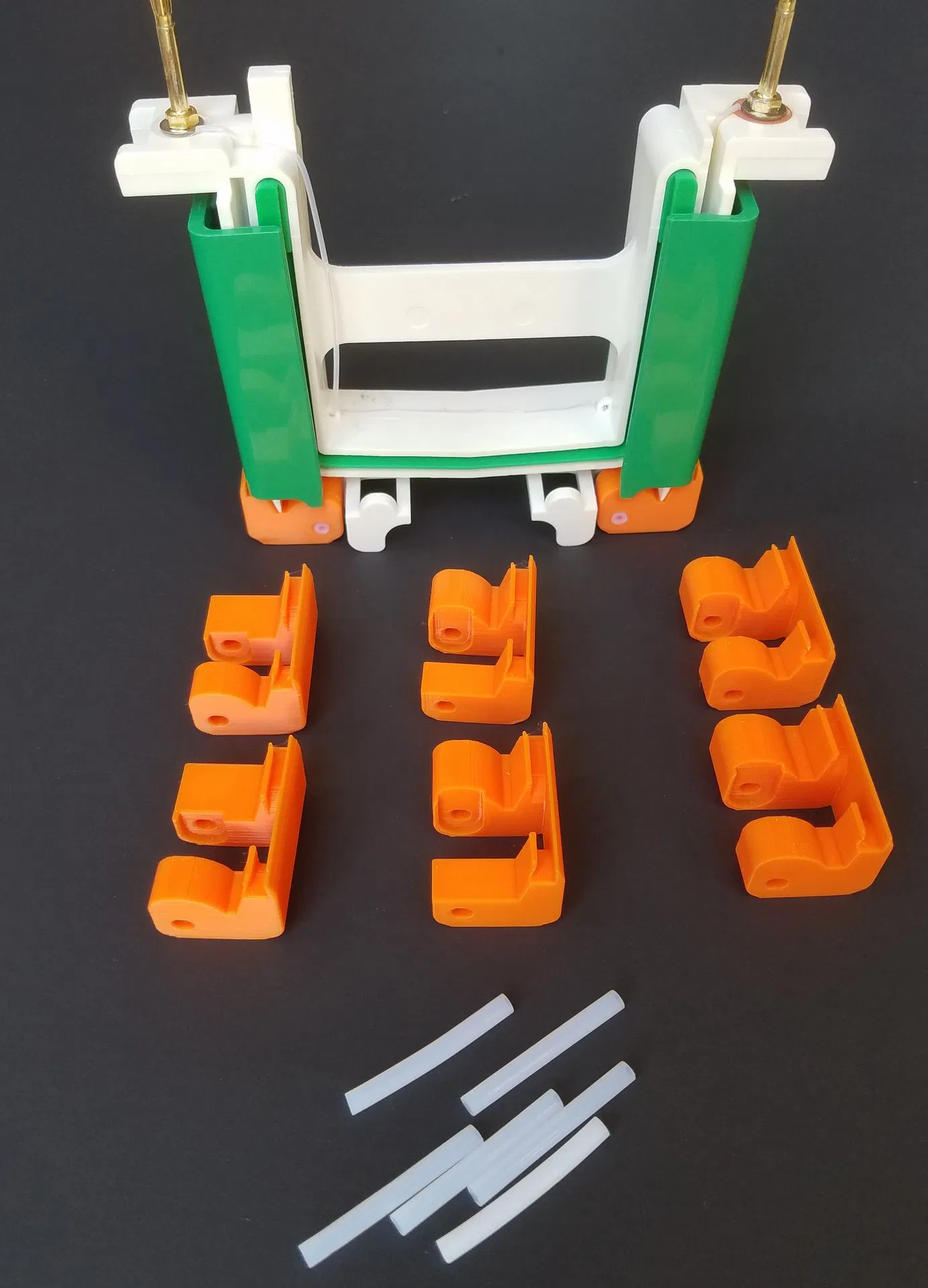 Để giữ cố định, luồn một cây chốt 4mm (hoặc ống tubing) qua lỗ giữa.