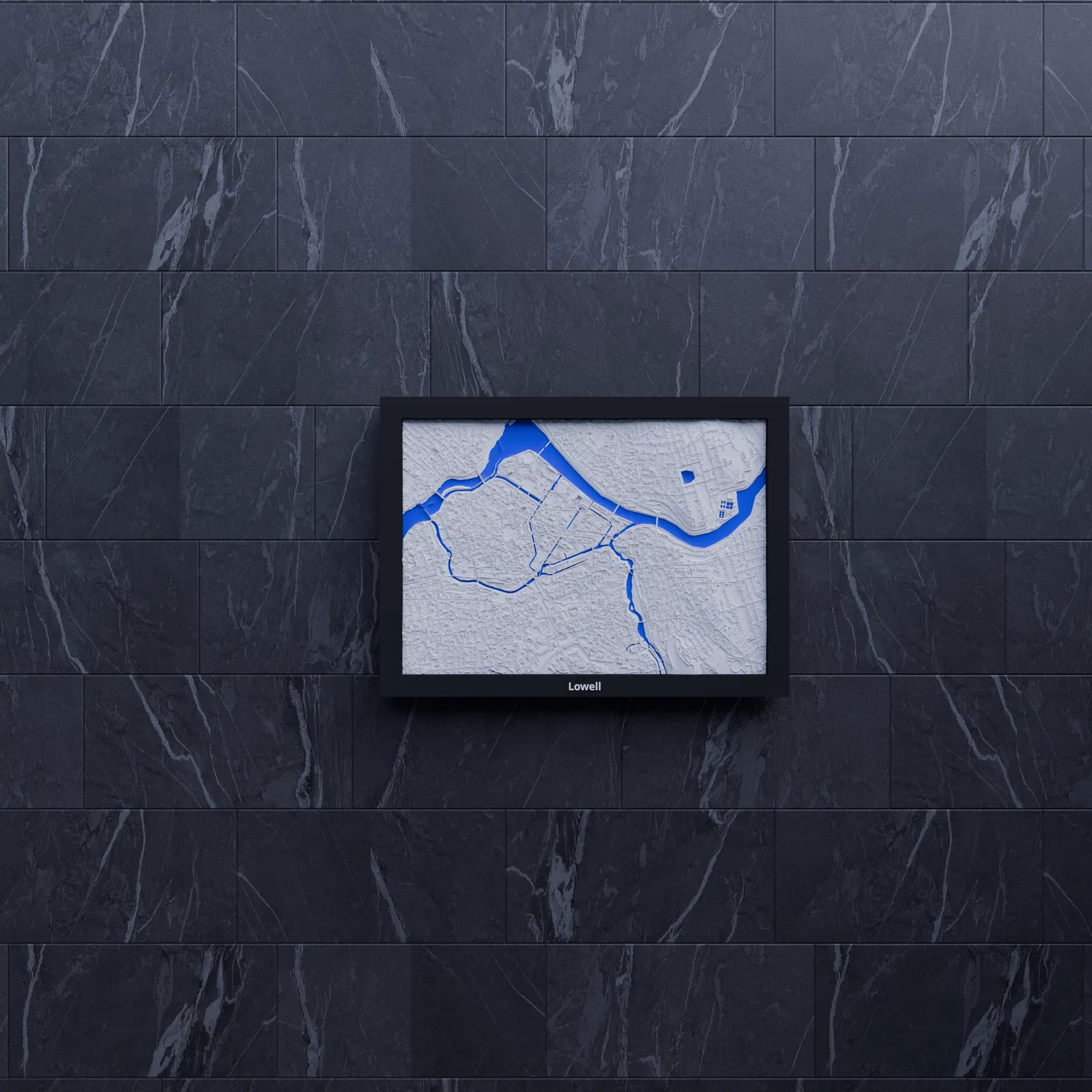 Mô hình thu nhỏ địa hình Lowell (Hoa Kỳ) in 3D, dựng từ dữ liệu địa lý thật. Thu nhỏ khu vực 4.270 km x 2.981 km về kích thước 170.5 x 119.5 mm, phù hợp trưng bày, học tập hoặc làm quà tặng.