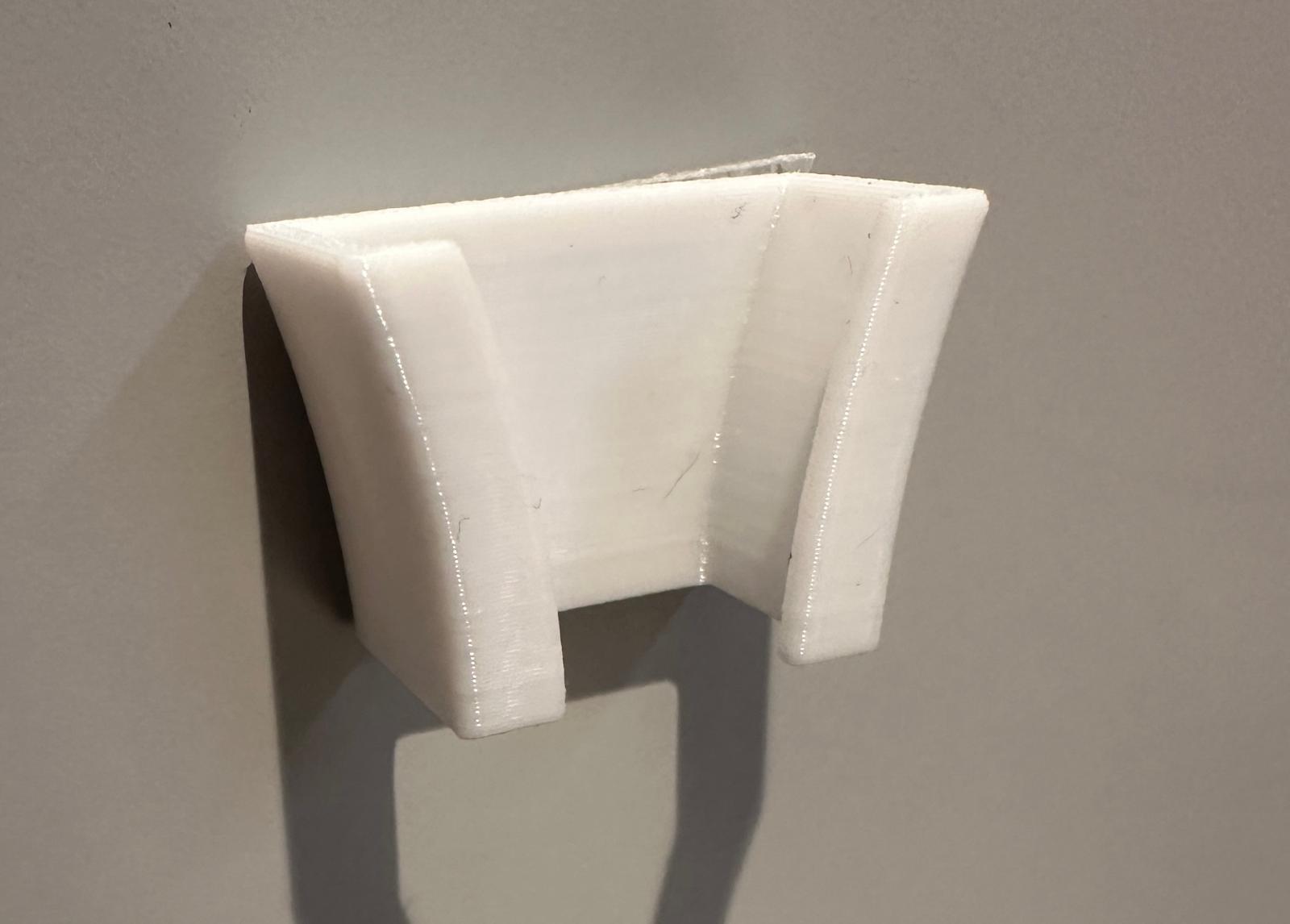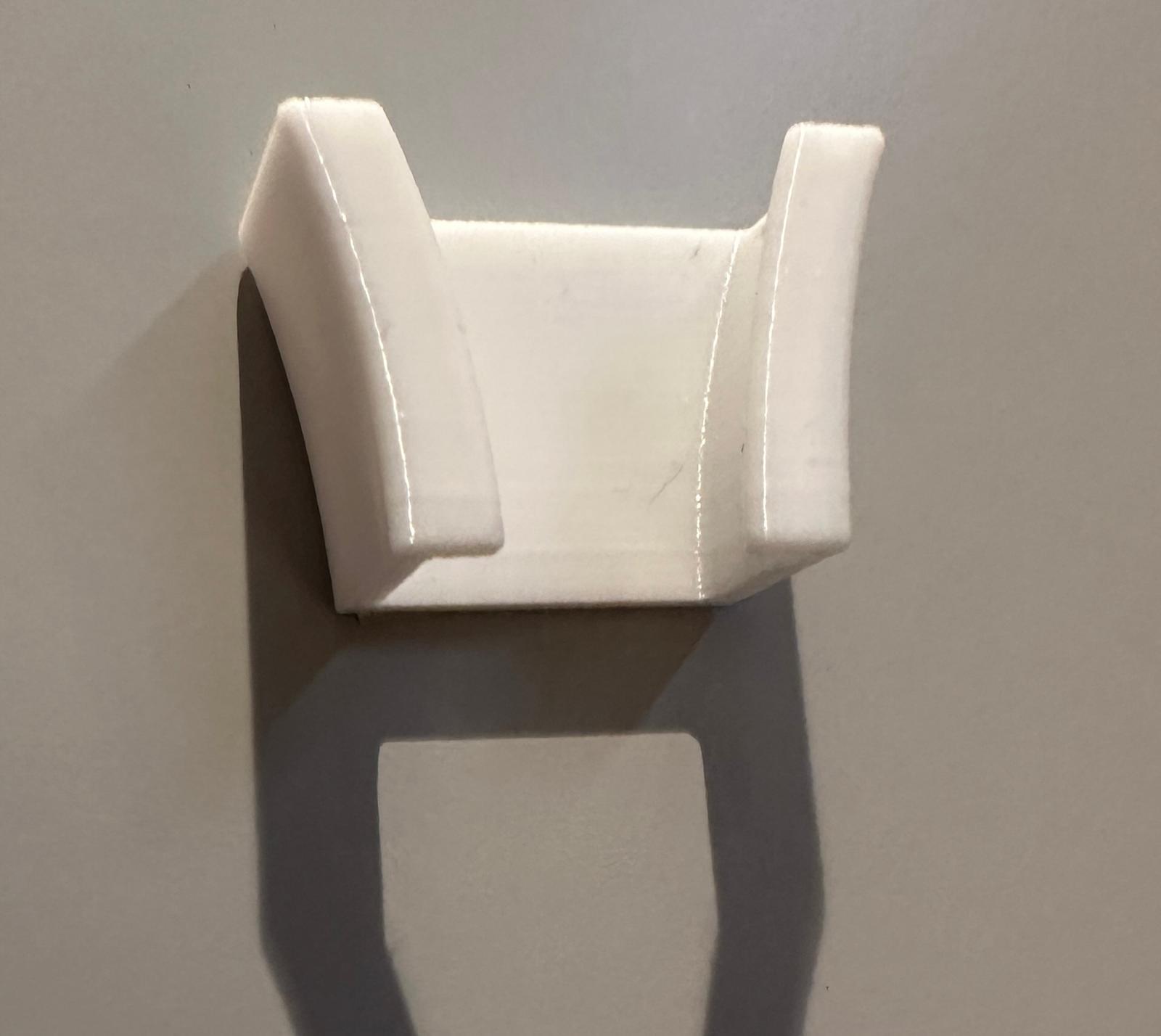 Giá đỡ đơn giản cho lược chải tóc Denman cỡ medium. Có thể cũng vừa với vài mẫu khác, nhưng mình chưa thử. Dùng băng keo hai mặt để cố định tại chỗ.