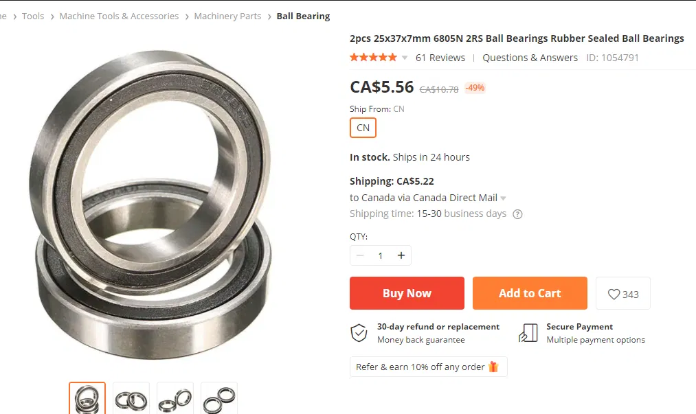 Cần 2x vòng bi 25x37x7.