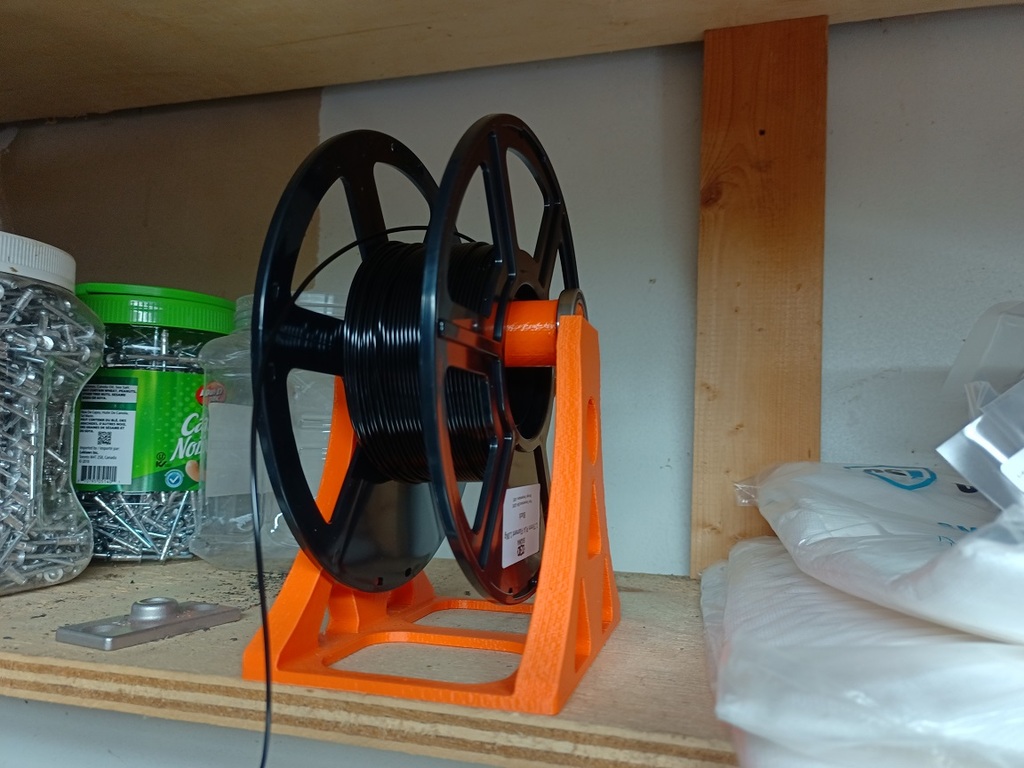 Mẫu giá đỡ cuộn filament gọn gàng, dùng ổn định và dễ in. Thiết kế đơn giản, không cần rafts hay supports. Cần 2 vòng bi 25x37x7; gợi ý in Resolution 200, infill 20 với PolyMaker PLA.