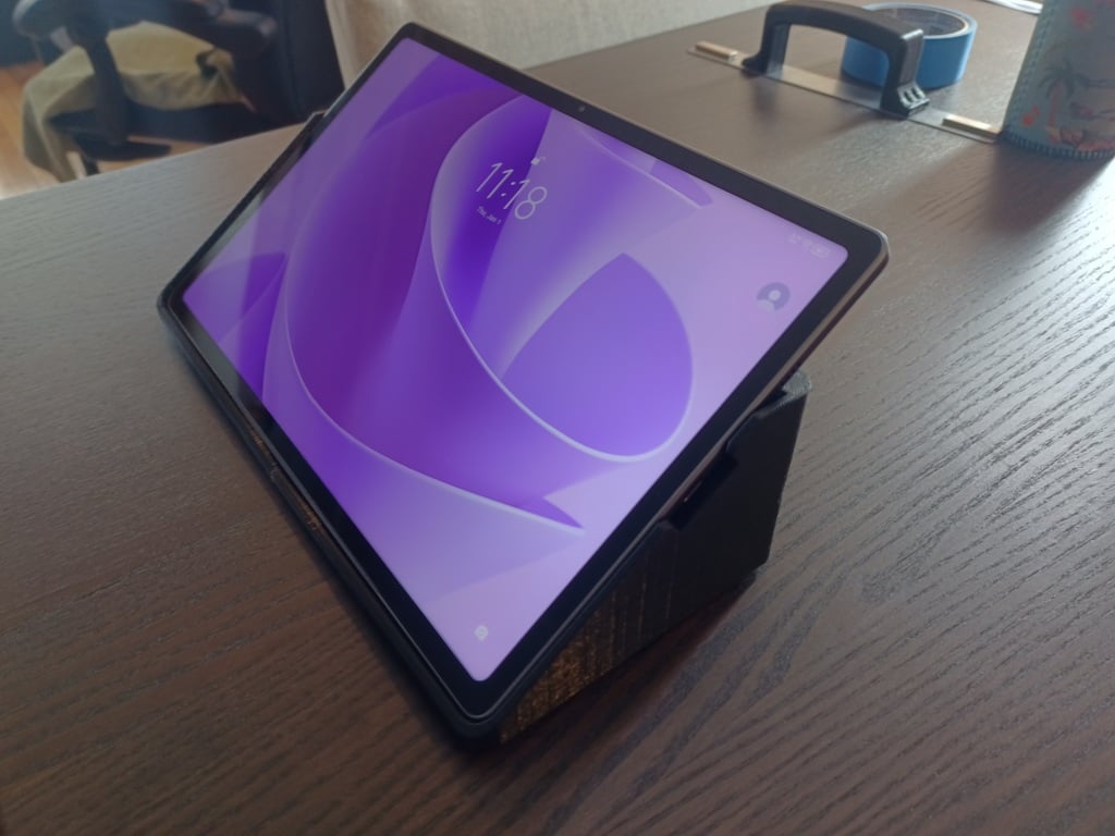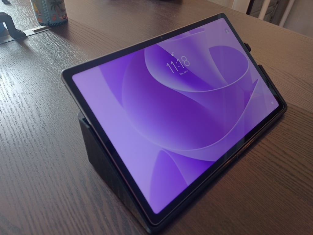 Giá đỡ tablet góc 35° cho Lenovo Idea Tab Plus hoặc tablet 11" (rộng tới 280mm), dùng thoải mái khi ngồi hay đứng trên bàn. Mẫu in 2 mảnh trái/phải, nên dán thêm chân cao su chống trượt.