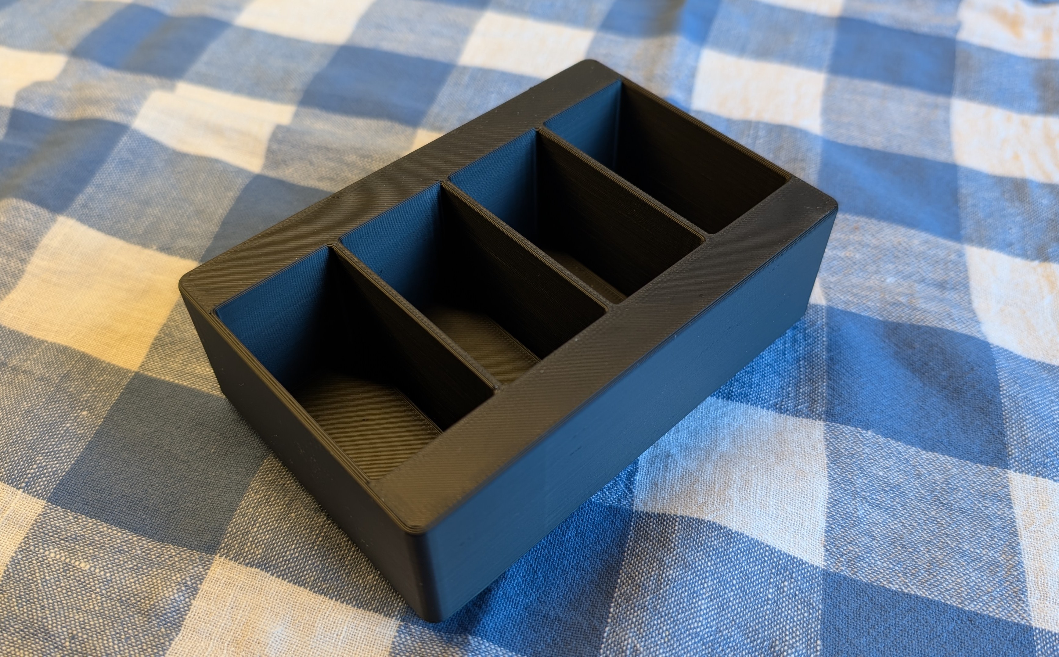 Hộp Gridfinity đơn giản để lưu trữ 4 gói khăn giấy (handkerchief/Taschentücher). Thiết kế vừa chuẩn kích thước phổ biến ở Đức; nếu bạn dùng brand khác mà vẫn vừa, hãy để lại bình luận để mọi người tham khảo.