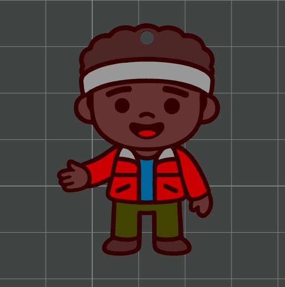 Mẫu móc khóa lấy cảm hứng từ Lucas Sinclair trong series Stranger Things. Phù hợp để in 3D làm quà tặng phong cách retro/ochentero, dùng treo chìa khóa hoặc trang trí balo.