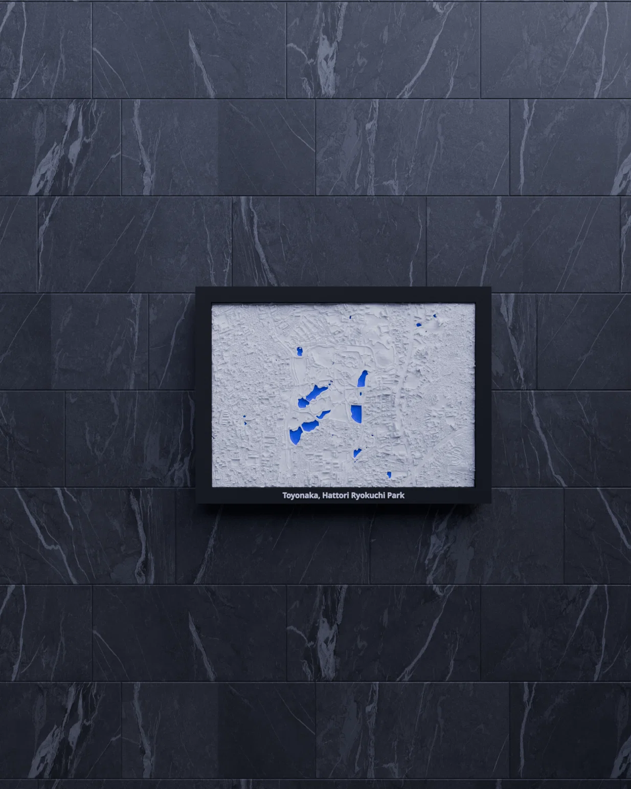 Tái hiện vẻ đẹp của Công viên Hattori Ryokuchi, Toyonaka, Nhật Bản bằng mô hình địa hình 3D thu nhỏ. Tỷ lệ ~18632:1, kích thước 170.5 x 119.5 mm. Lý tưởng để trang trí, giáo dục, hoặc làm quà tặng. Bao gồm nhiều tùy chọn khung in.