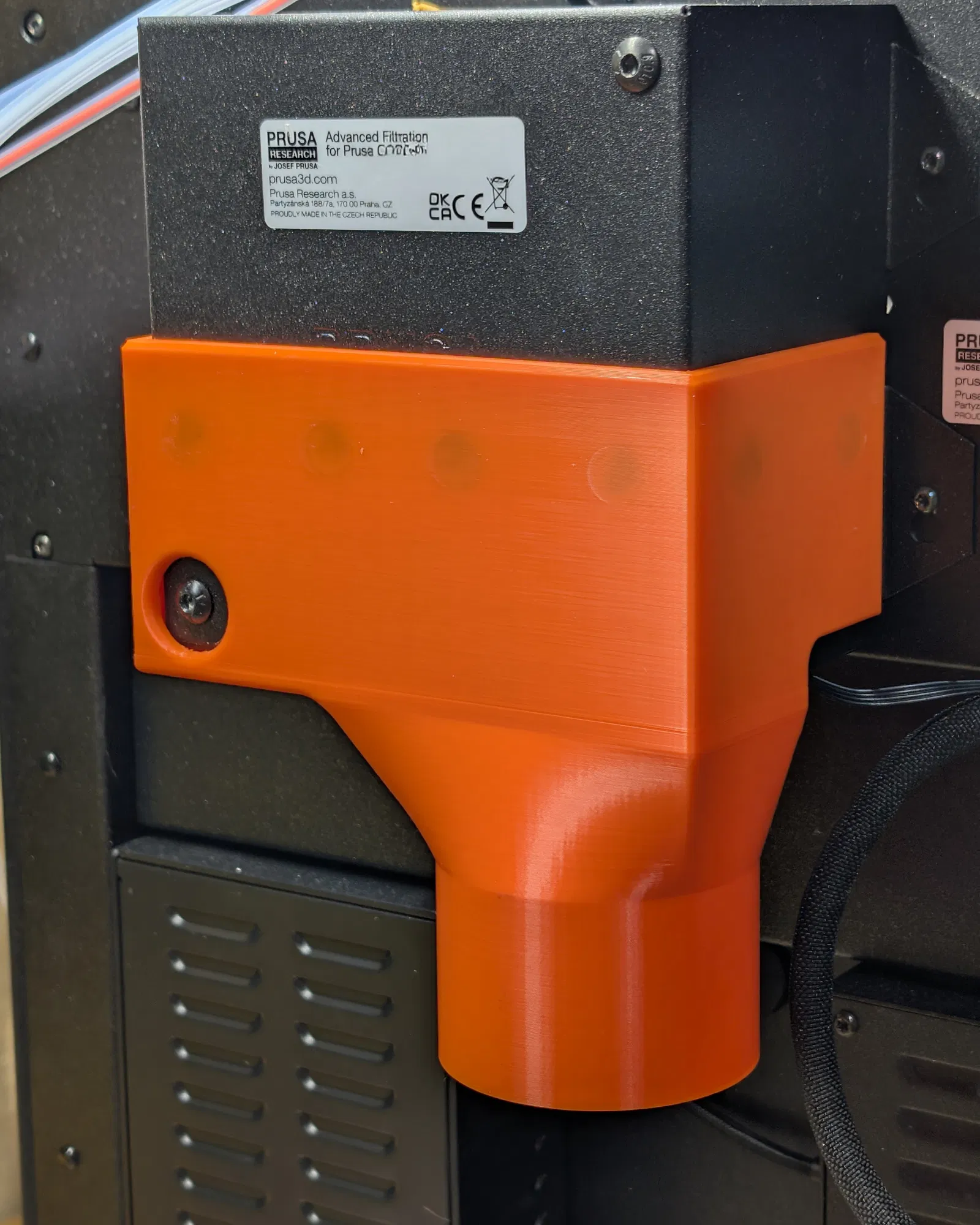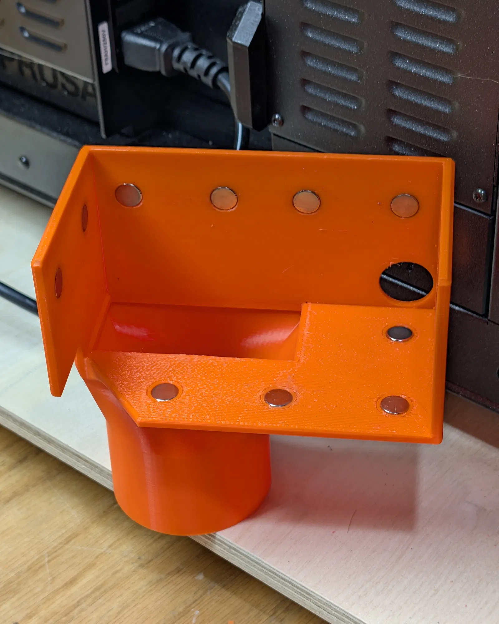 Đây là ngàm gắn nam châm để gắn ống thông gió 2-1/2 inch (63mm) vào hệ thống Prusa CORE One Advanced Filtration System. Chi tiết ôm khít và được giữ chắc bằng nam châm 10mm x 3mm, nhưng vẫn tháo ra rất dễ.