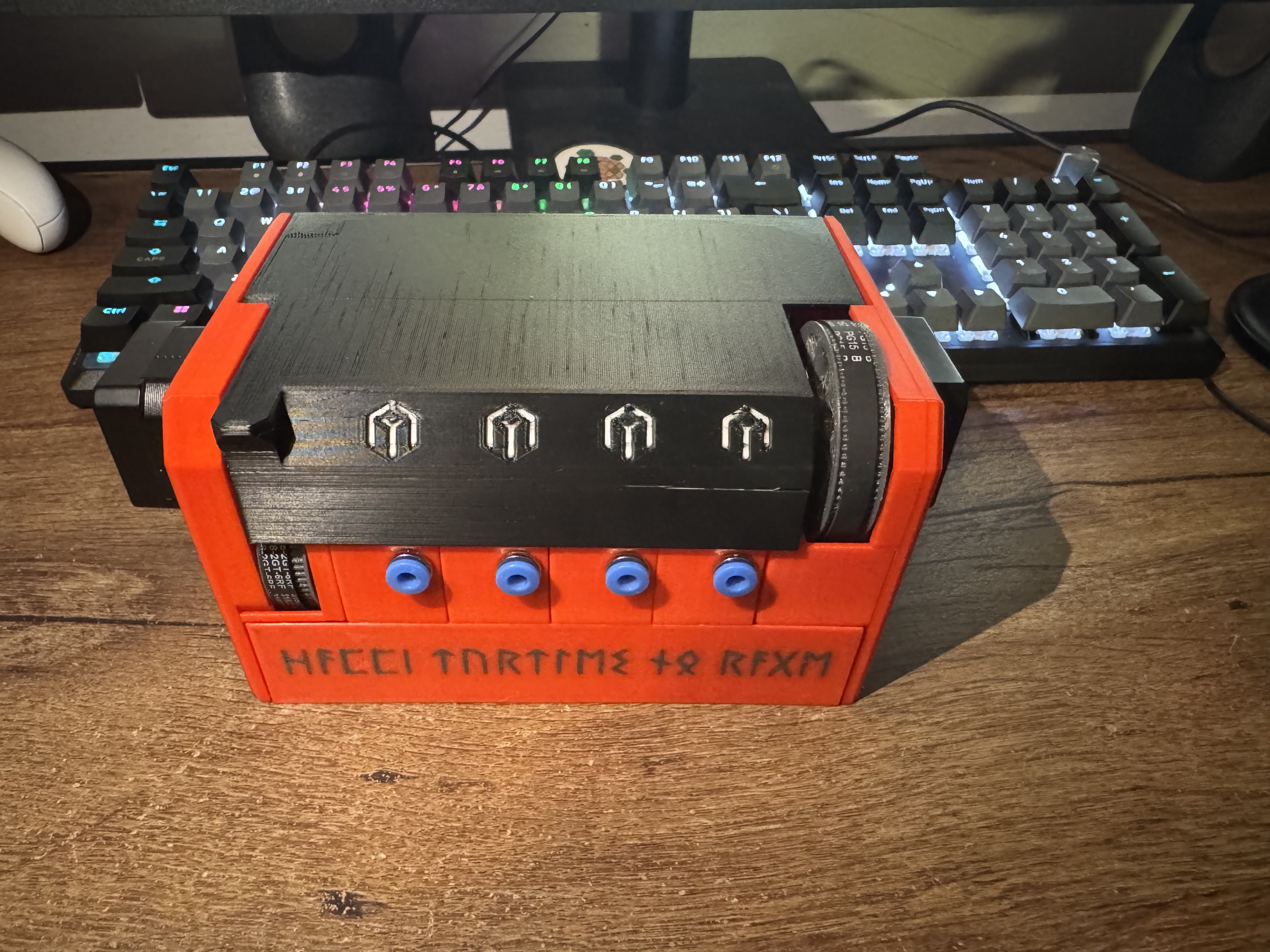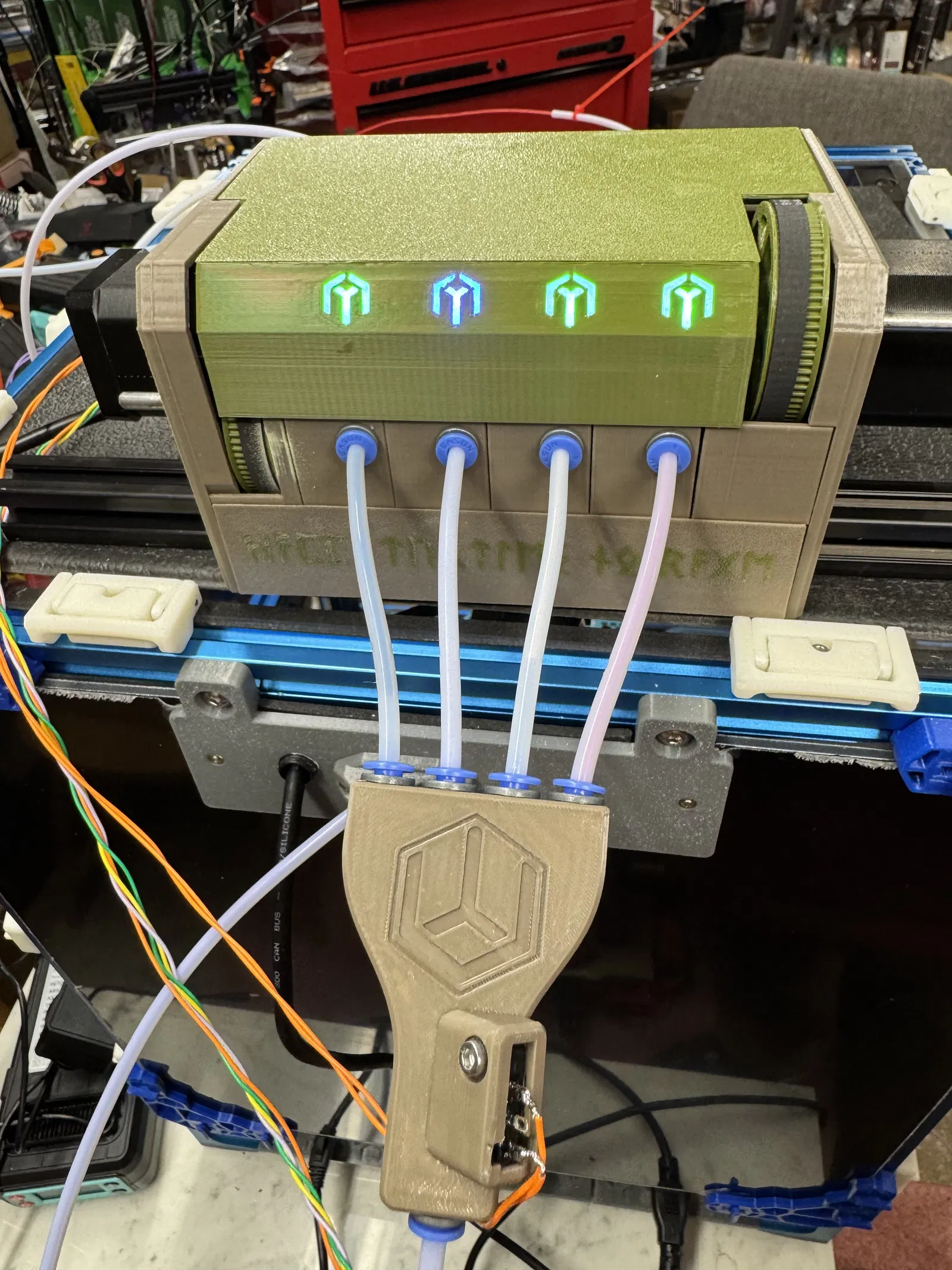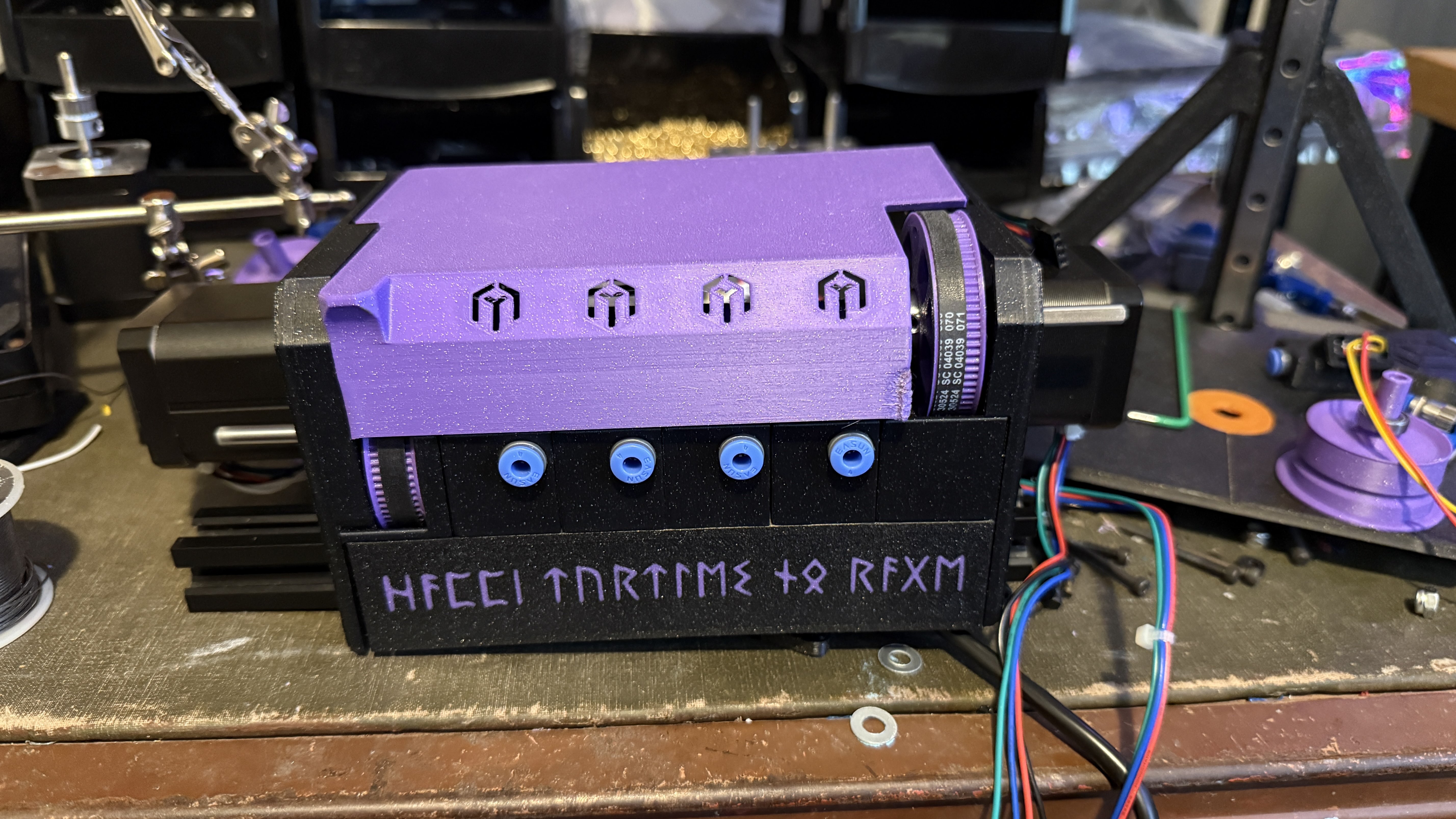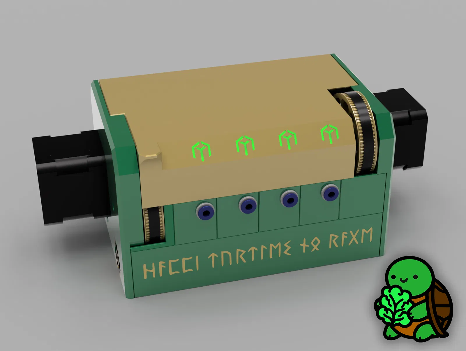 HTLF là một bộ đổi filament theo dạng “lane” cho Klipper, do ArmoredTurtle thiết kế. Nó dùng một camshaft để gài (engage) lane được chọn, về cơ bản biến lane đó thành một extruder direct drive (không phải đau đầu vụ bị trượt). Bản “stock build” là hệ 4 màu, nhưng có sẵn CAD nếu bạn muốn mở rộng thêm.