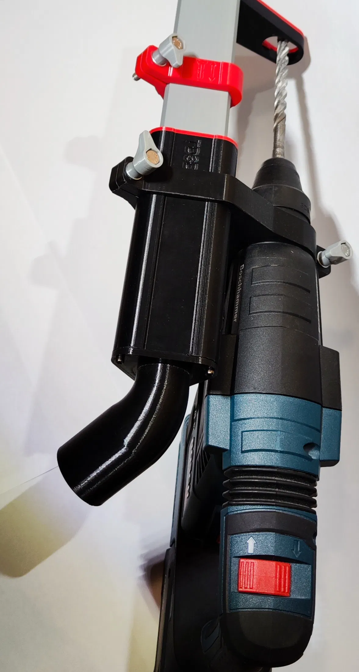 Bộ gom bụi dùng cho máy khoan búa SDS, khoan sâu tối đa 85mm. Chặn độ sâu chỉnh nhanh, lắp ráp đơn giản với vài con ốc và đai ốc. Có adapter hút bụi 36mm (Festool, v.v.).