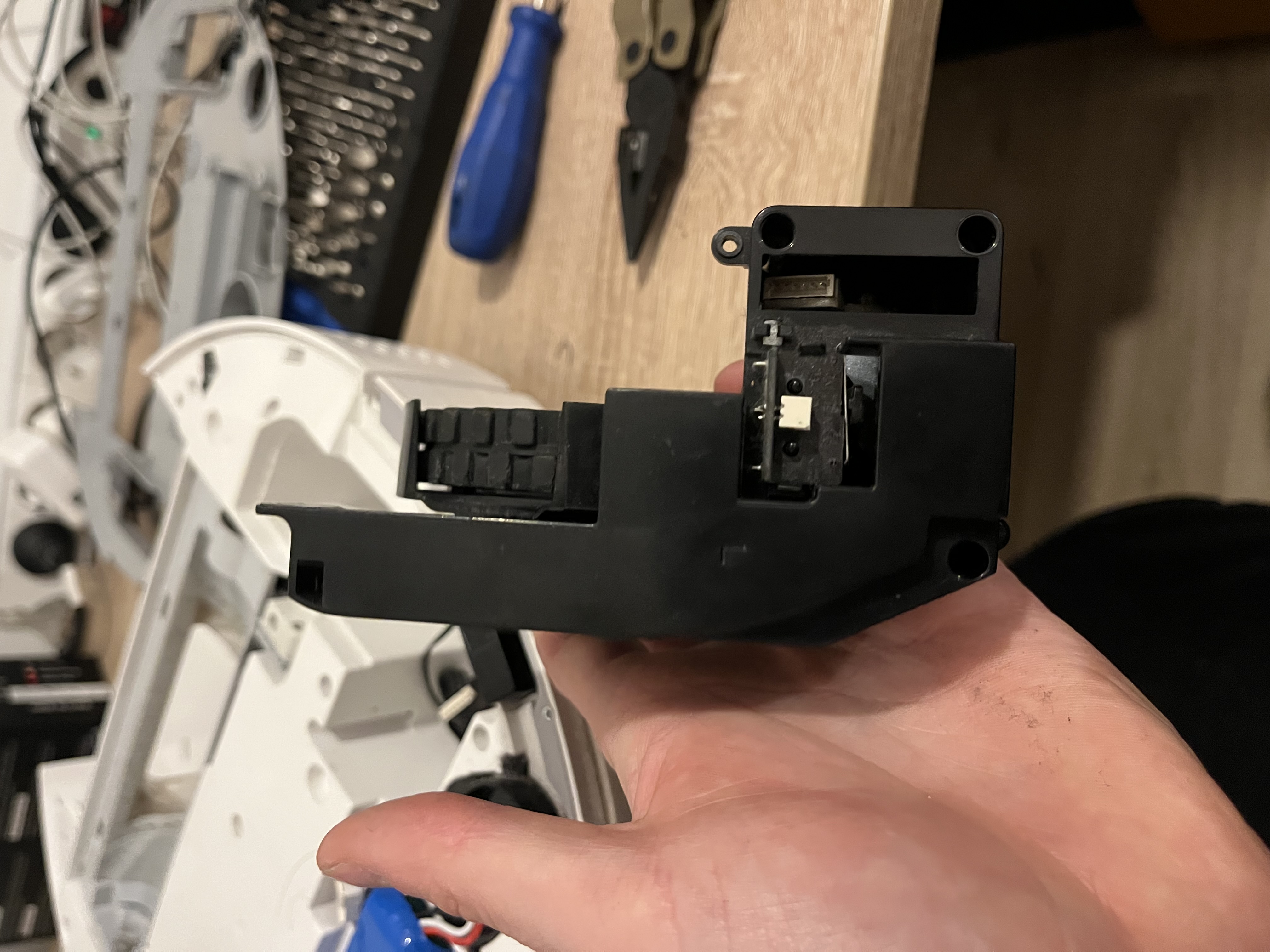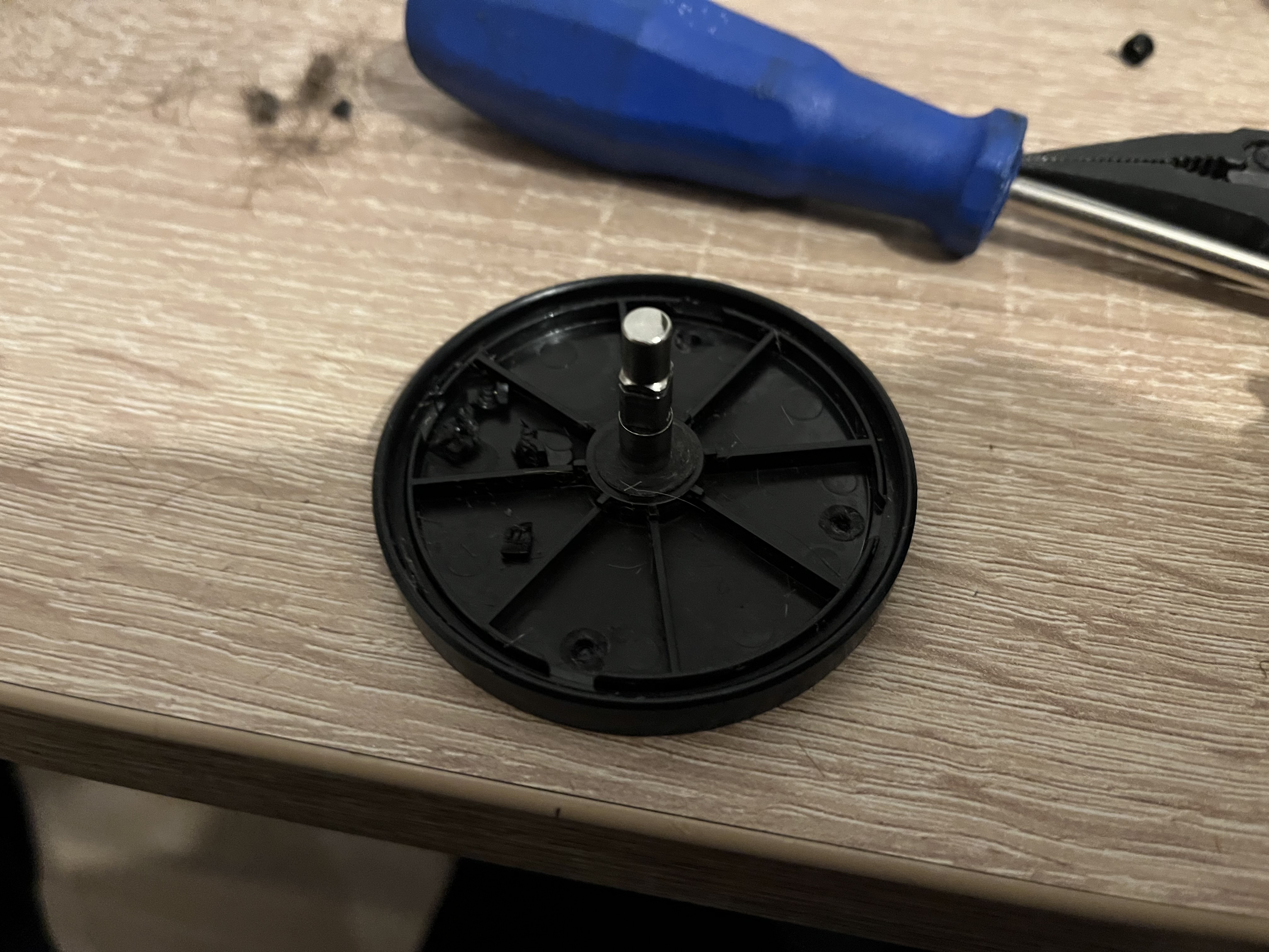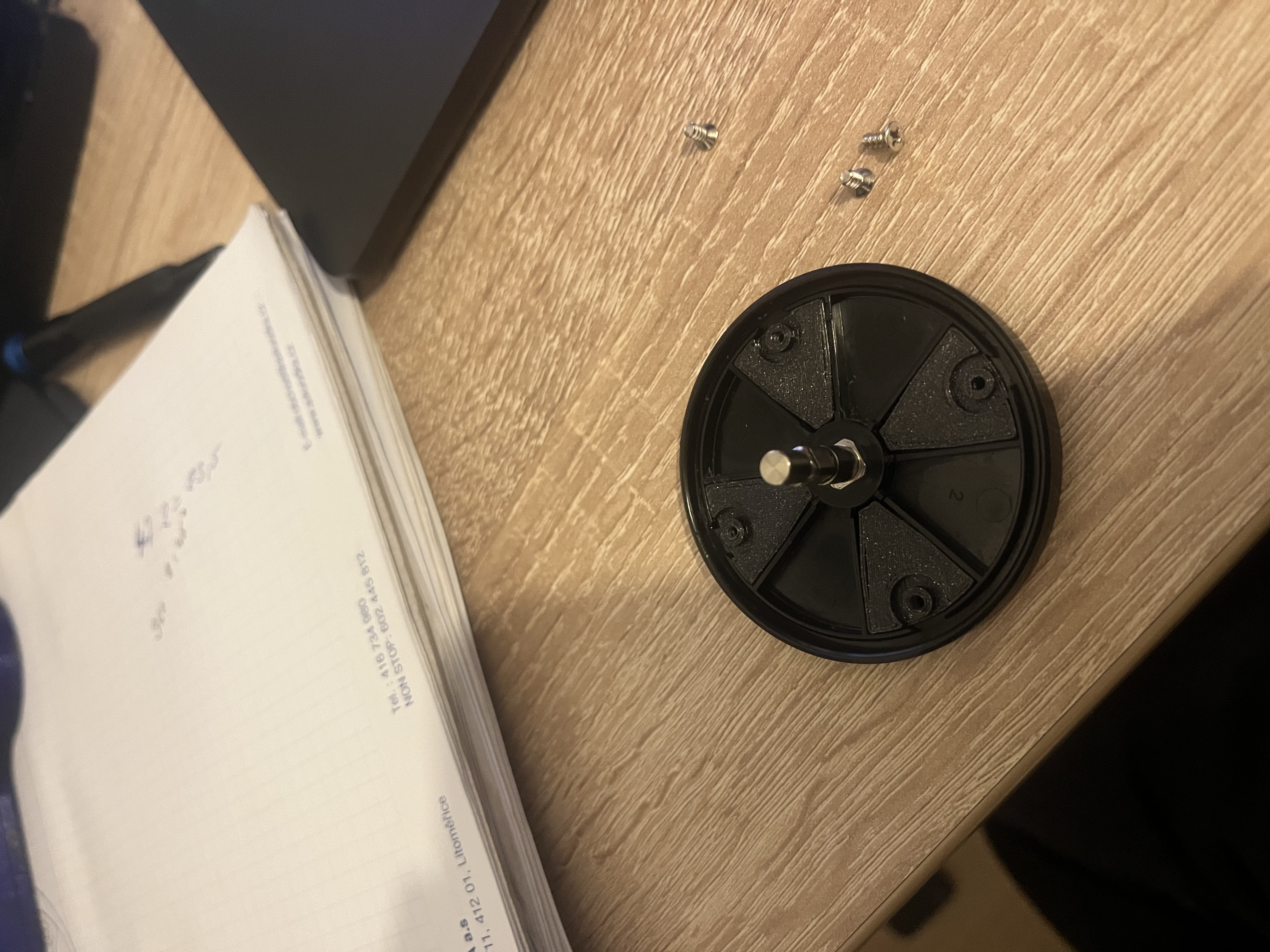 Mình thấy con robot hút bụi bị kẹt giữa phòng do bánh phải bị đứng. Khi tháo ra thì phát hiện mấy con ốc giữ bánh bị bung ra và chặn luôn chuyển động quay. Nó bung ra vì phần ren ở phía đối diện của nửa bánh (wheel half) bị nứt vỡ hết. Vì vậy mình làm mấy miếng insert bằng nhựa để sửa kiểu lỗi này.