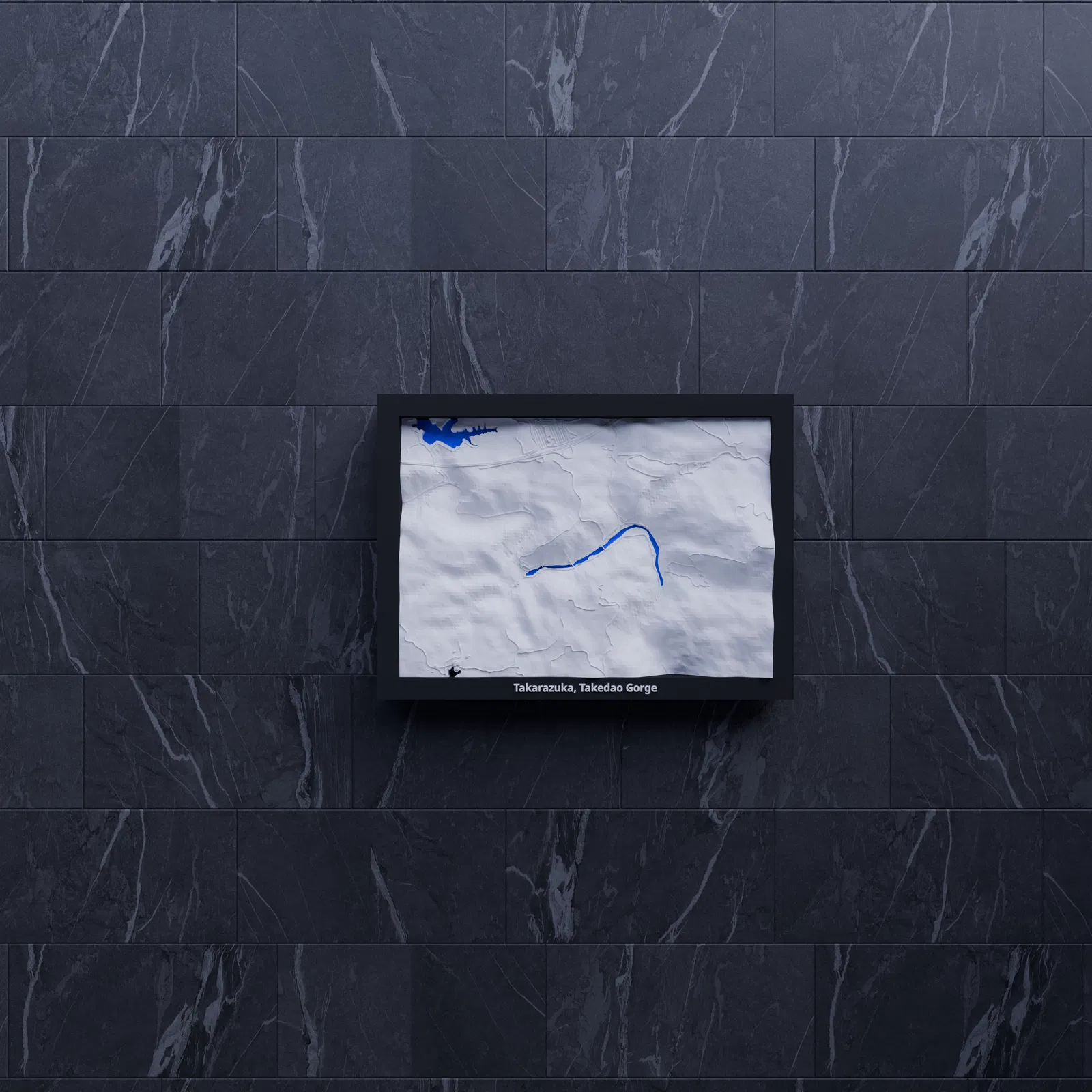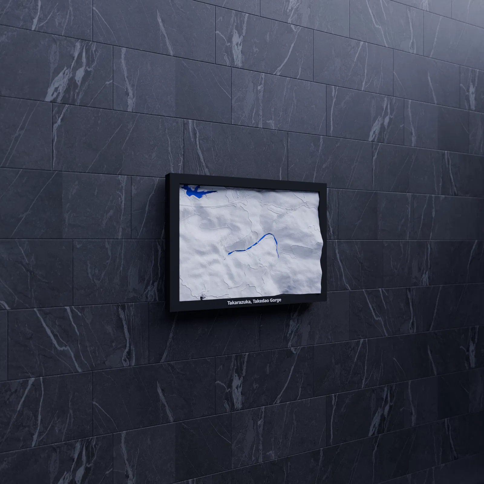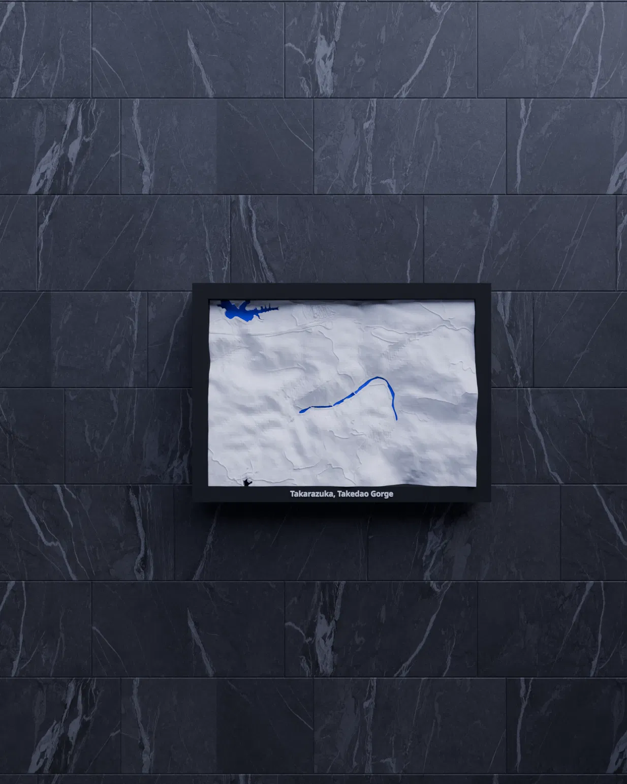 Tái hiện địa hình Takarazuka, Takedao Gorge (Nhật Bản) dạng mô hình thu nhỏ topographic để in 3D. Dựa trên dữ liệu địa lý, có nhiều frame kèm lỗ treo, phù hợp trưng bày, học tập hoặc làm quà tặng.
