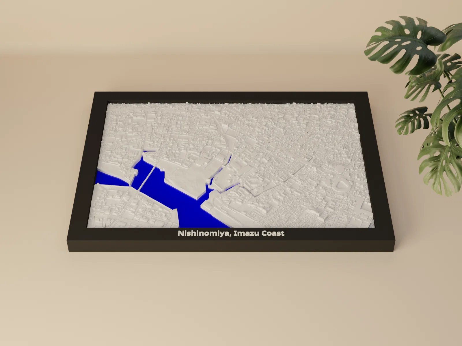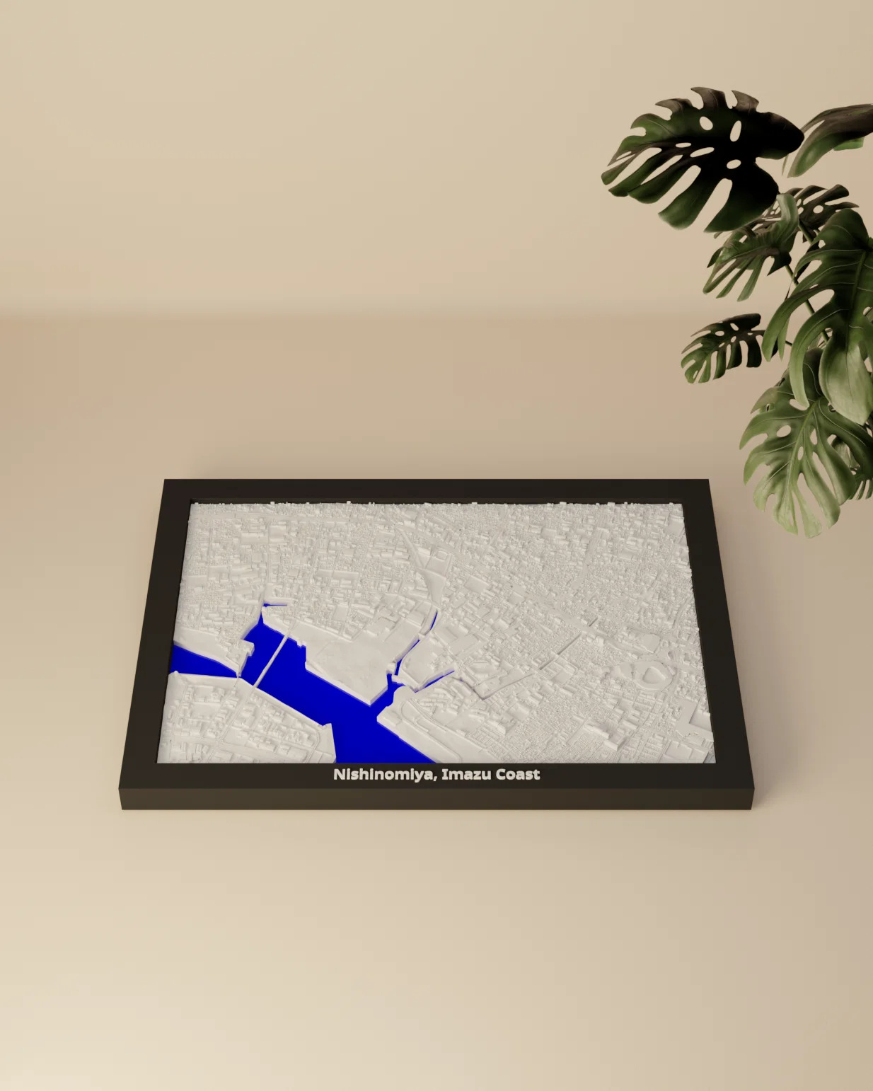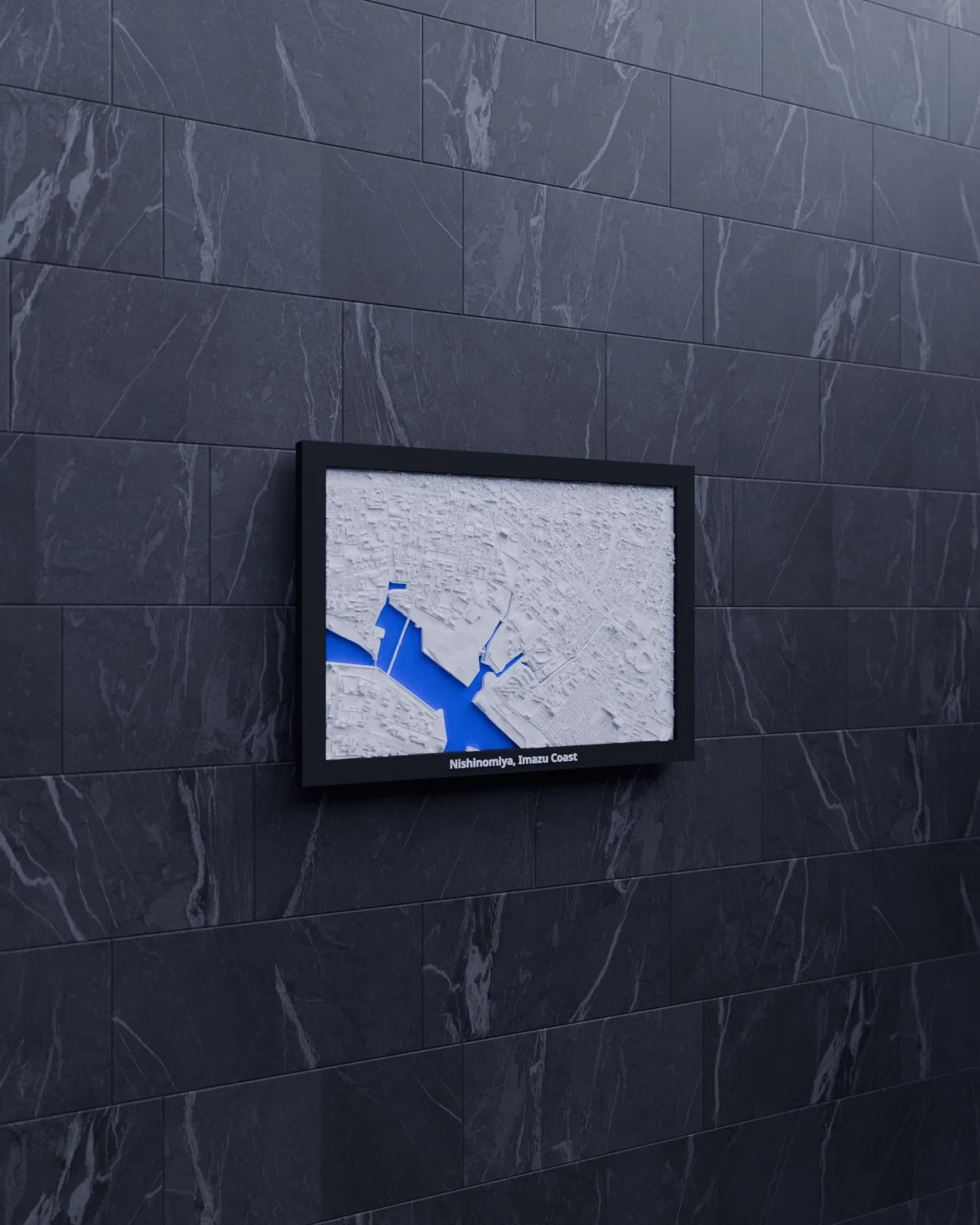 Tái hiện địa hình Nishinomiya – bờ biển Imazu (Nhật Bản) dưới dạng bản thu nhỏ topographic in 3D. Có frame kèm lỗ treo, nhiều lựa chọn khắc chữ, phù hợp trưng bày, học tập và trang trí.