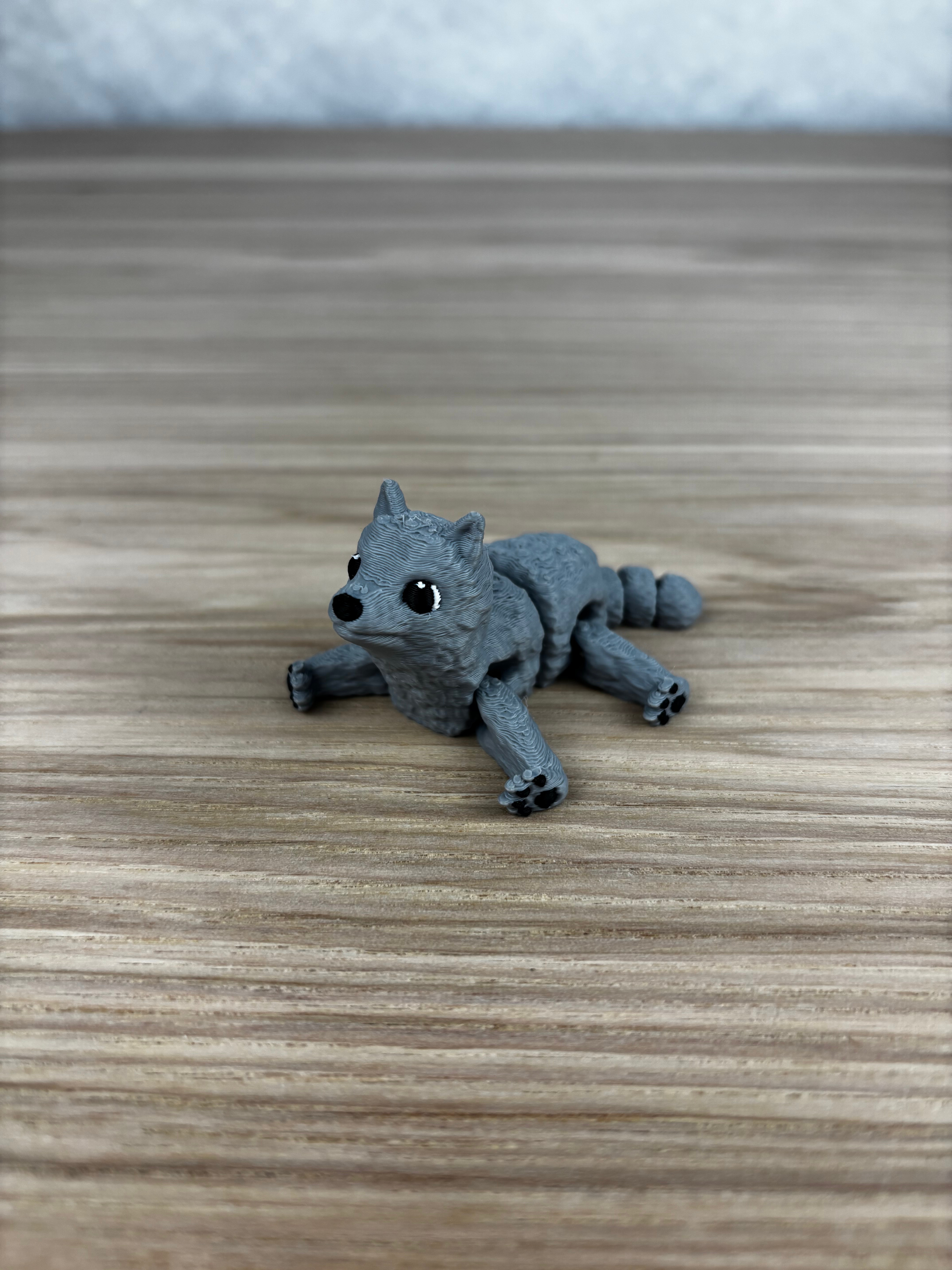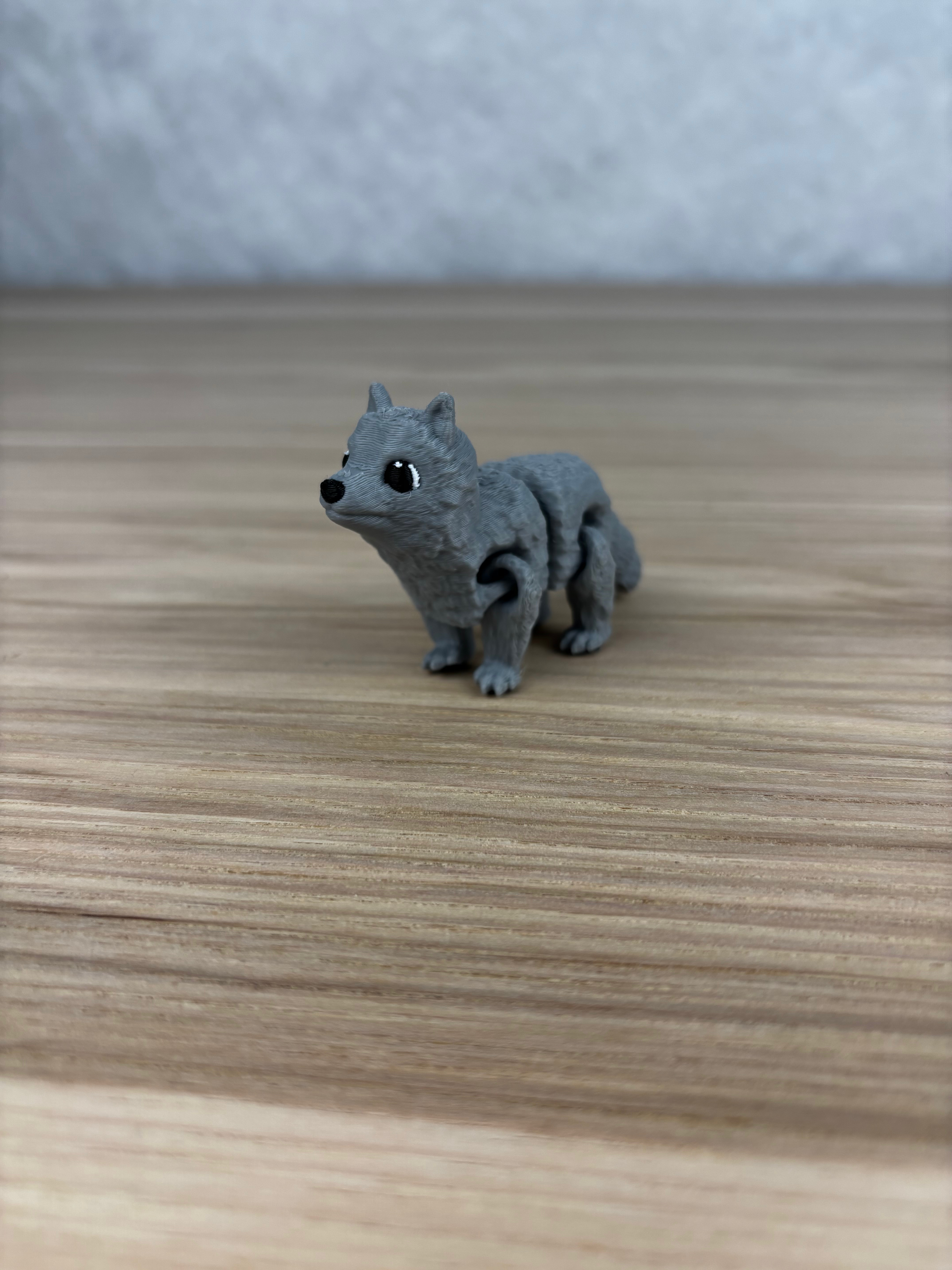 Wolf Fidget là mẫu fidget dạng articulated/flexi với hình sói. File đi kèm gồm .stl thường và .3mf đã sơn; khuyến nghị in 15% gyroid infill để chuyển động mượt và chắc tay.