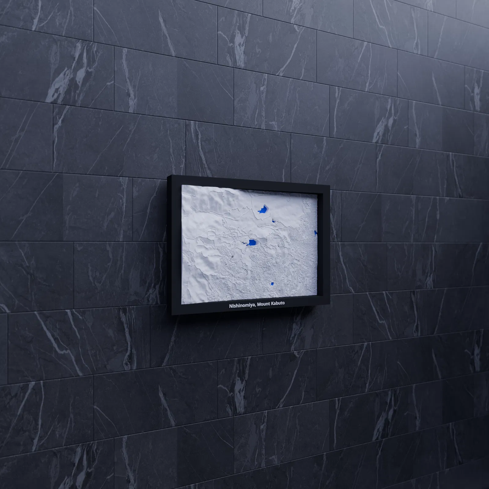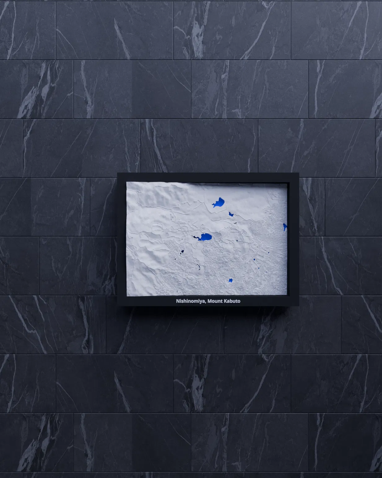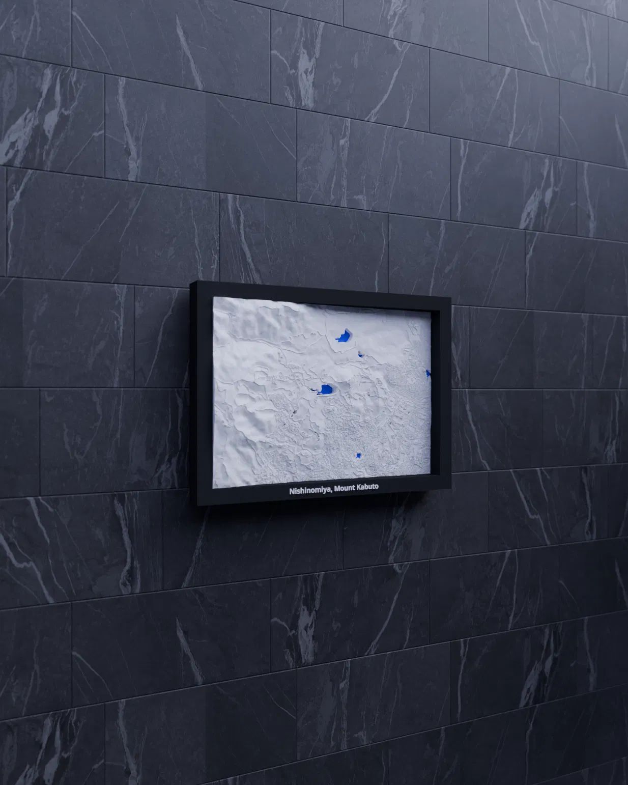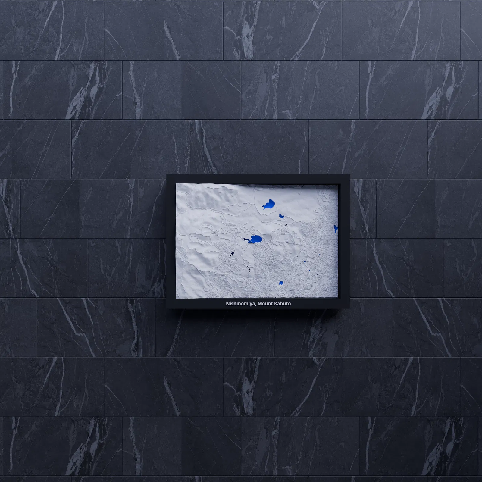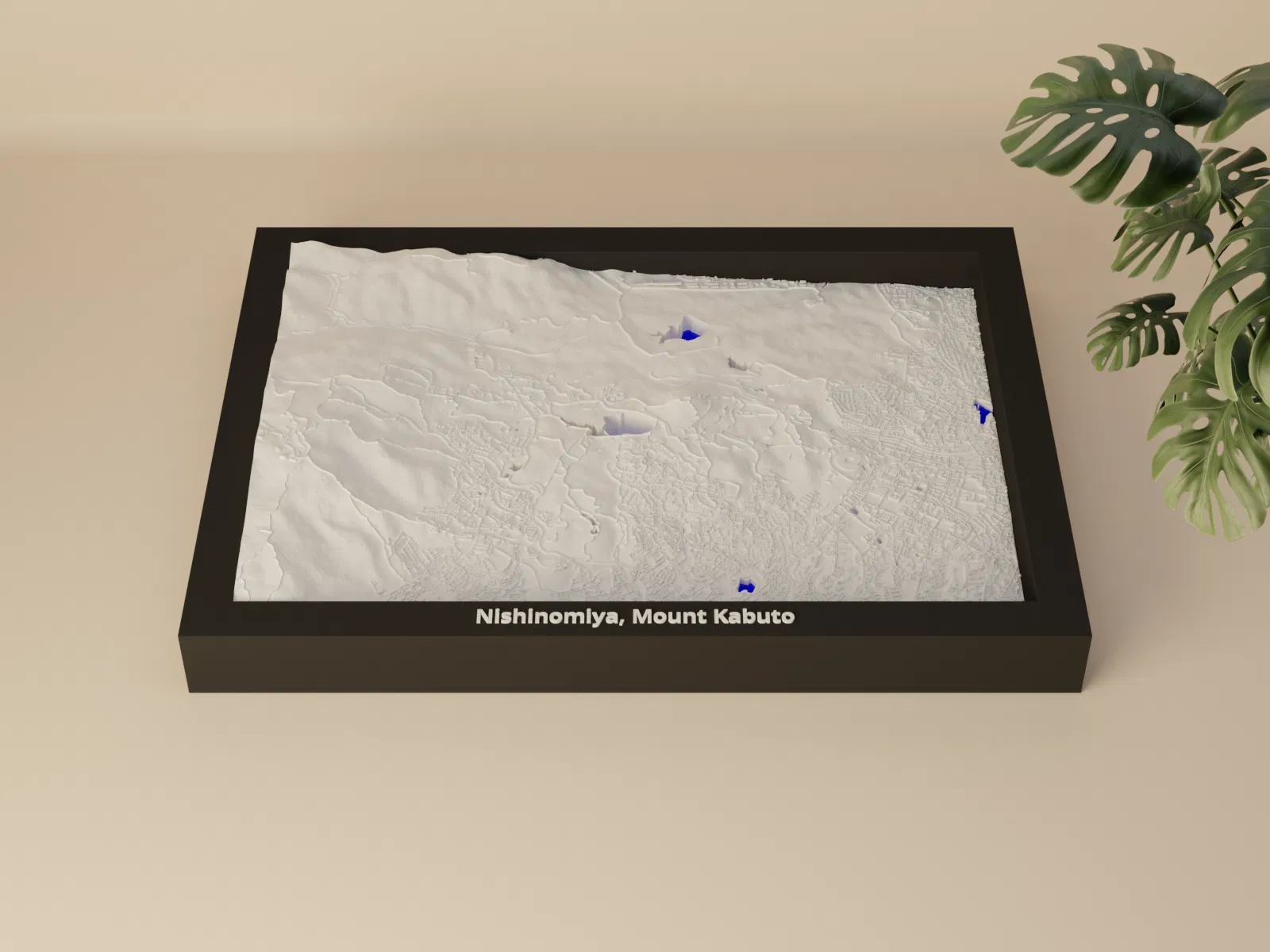 Mô hình địa hình 3D thu nhỏ tái hiện Nishinomiya và Mount Kabuto (Nhật Bản) từ dữ liệu địa lý, kích thước 170.5 × 119.5 mm, tỷ lệ ~32609:1. Có nhiều khung kèm lỗ treo, phù hợp trưng bày hoặc học tập.