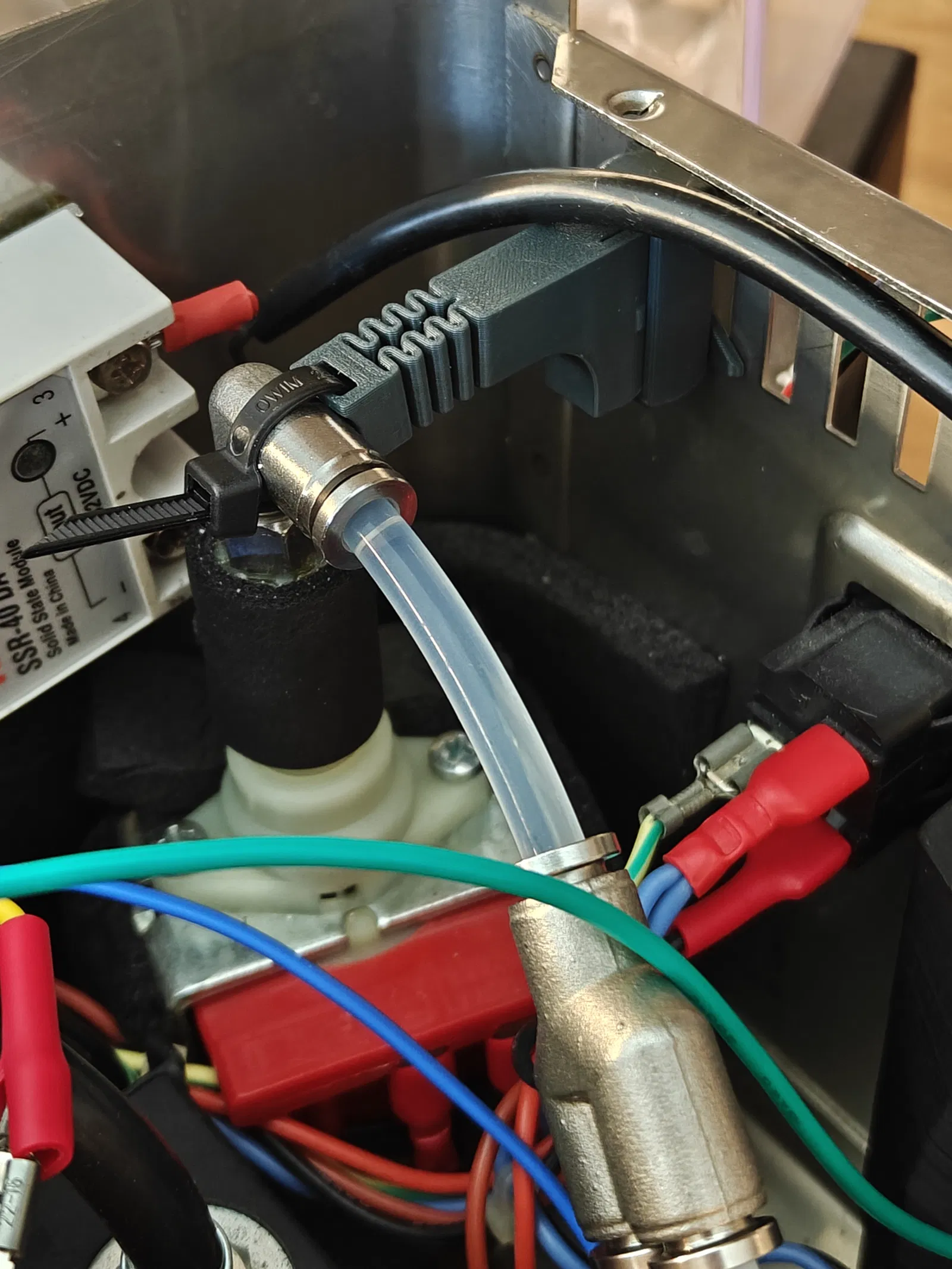 Lưu ý: Một số bạn dùng Gaggiuino phản hồi holder này là bổ sung rất hay khi kết hợp với để giữ bơm đứng thẳng. Nếu bạn dùng theo kiểu này, tùy chọn ngàm gắn ống 6mm có thể hợp với bạn.