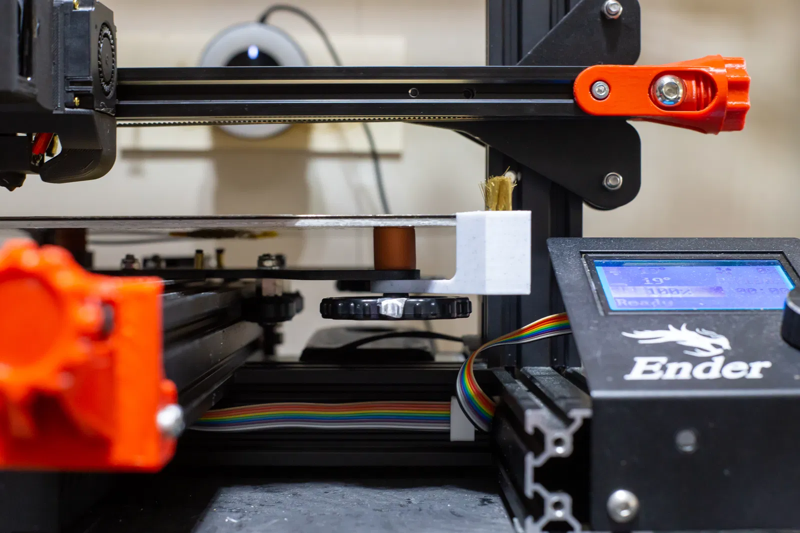 Cách nhanh gọn lẹ để gắn thêm bàn chải lau nozzle cho Ender 3 của bạn. Sẽ cần trượt màn hình hiển thị qua một chút để vừa chỗ gắn.