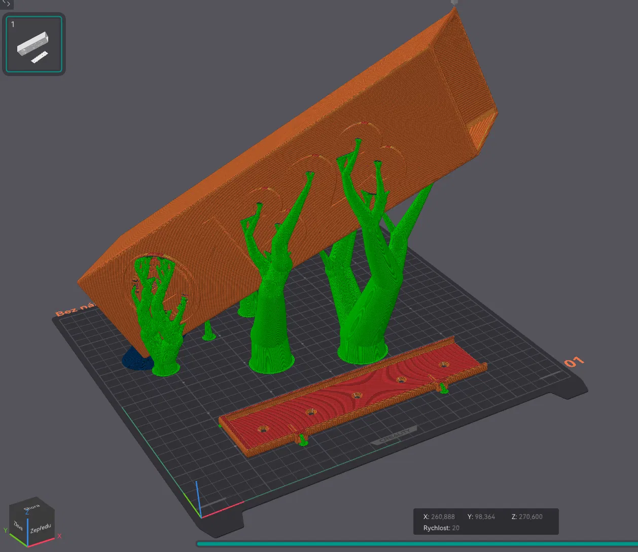 • Support: Có, tree ở những chỗ cần thiết – tùy độ dốc của chi tiết khi in