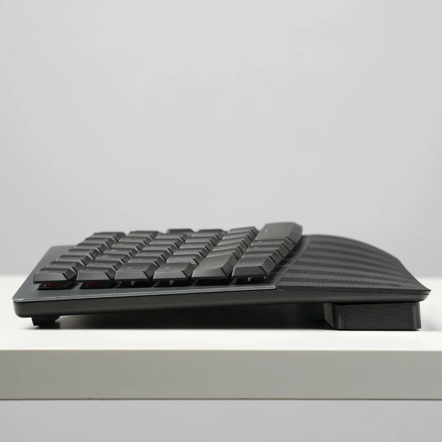 Chân đế zin trên các mẫu này có thể bị gãy khi chịu lực nhấn xuống mạnh lúc gõ. Để xử lý vấn đề đó, thiết kế gia cố này giúp tăng độ bền, độ ổn định và độ chắc chắn, đồng thời vẫn giữ cách lắp đặt gọn gàng, theo kiểu modular.