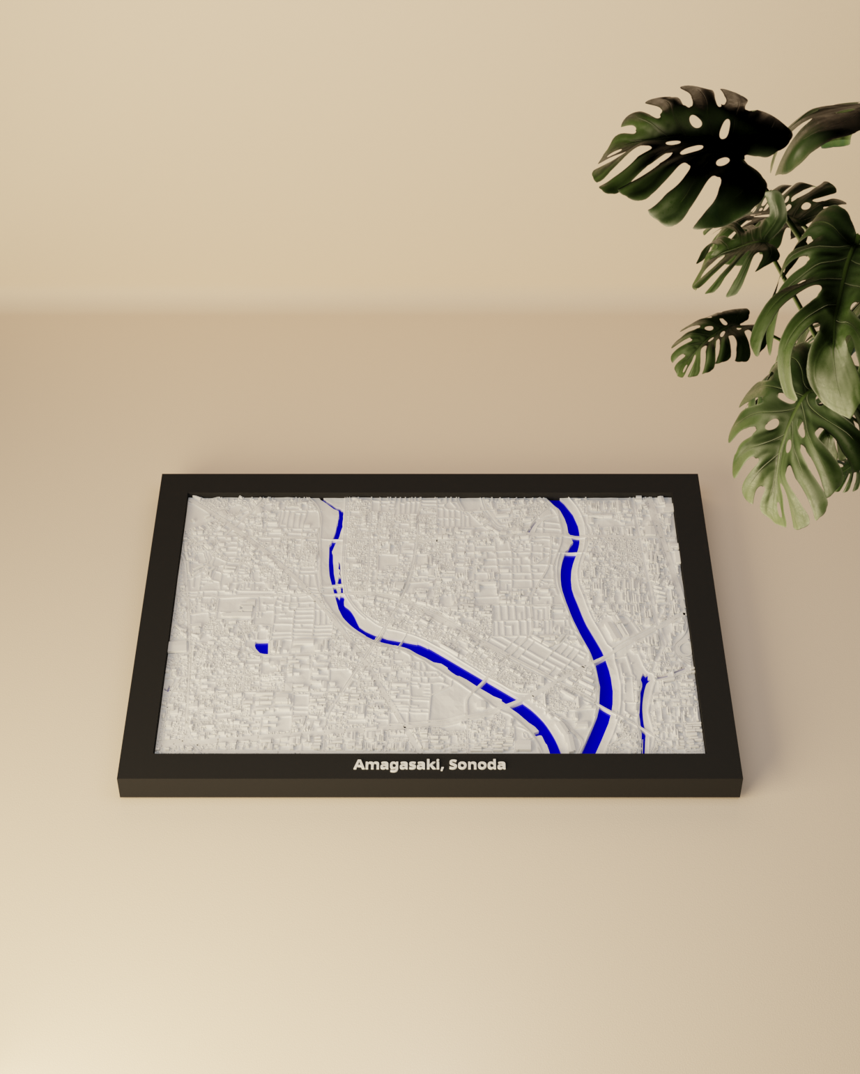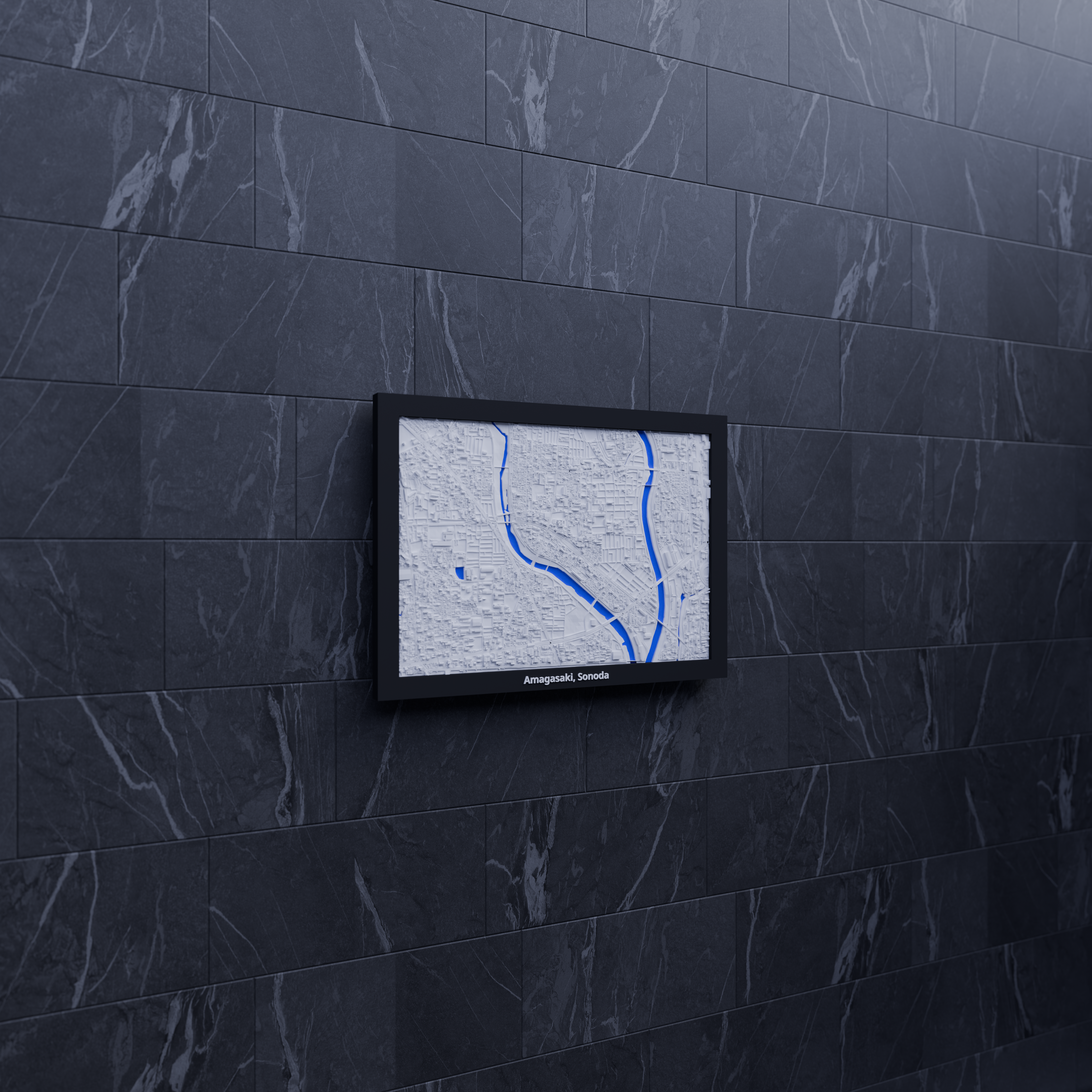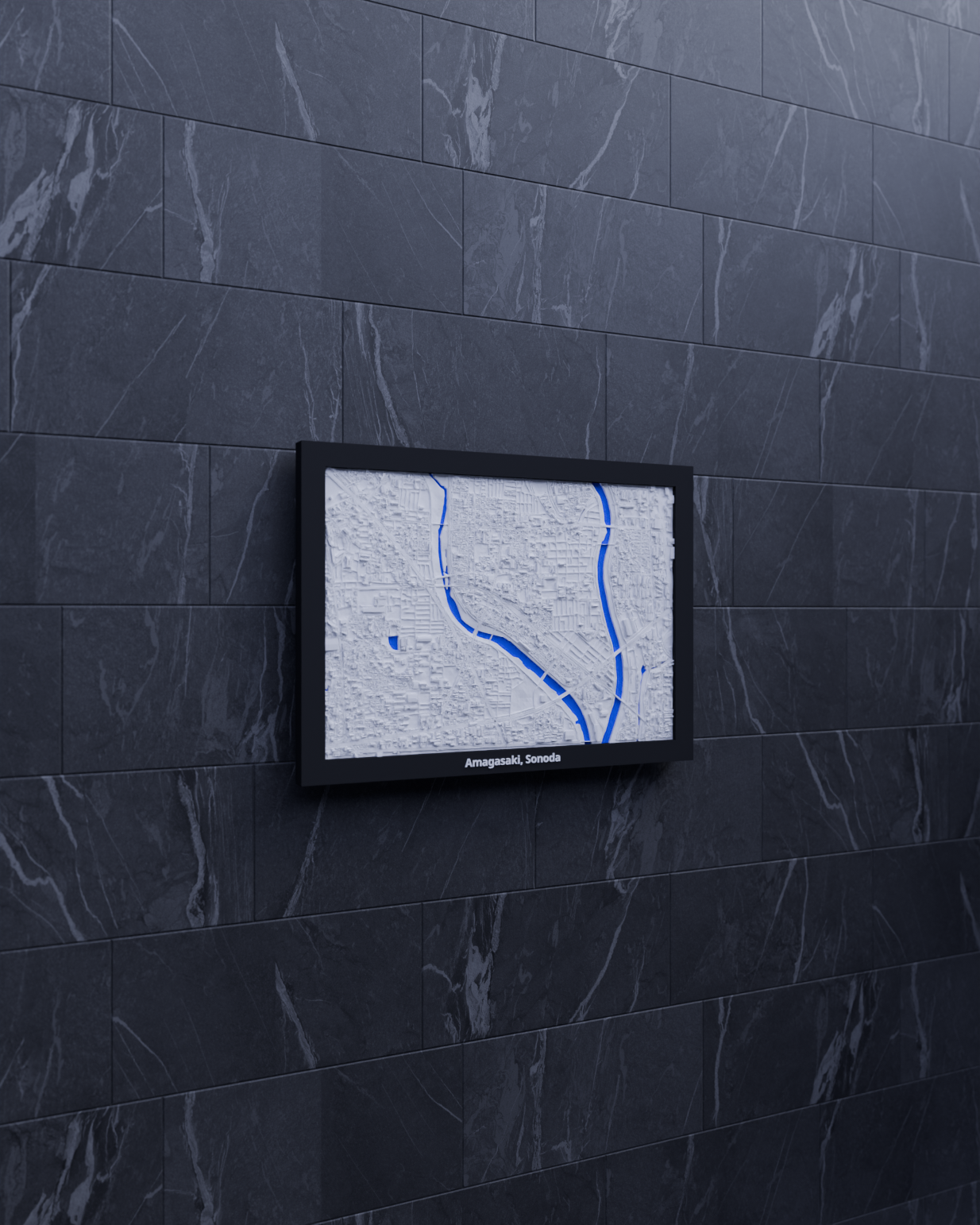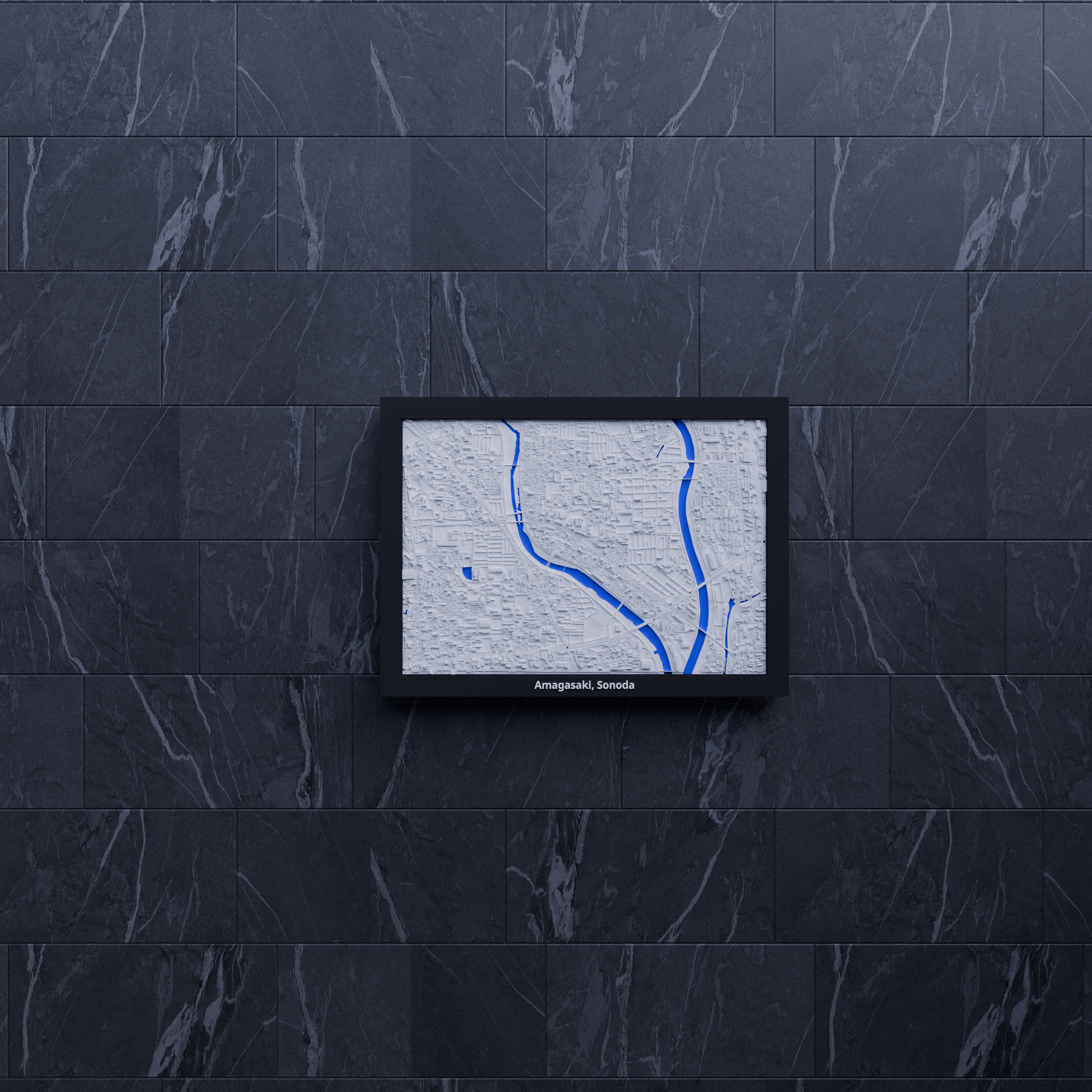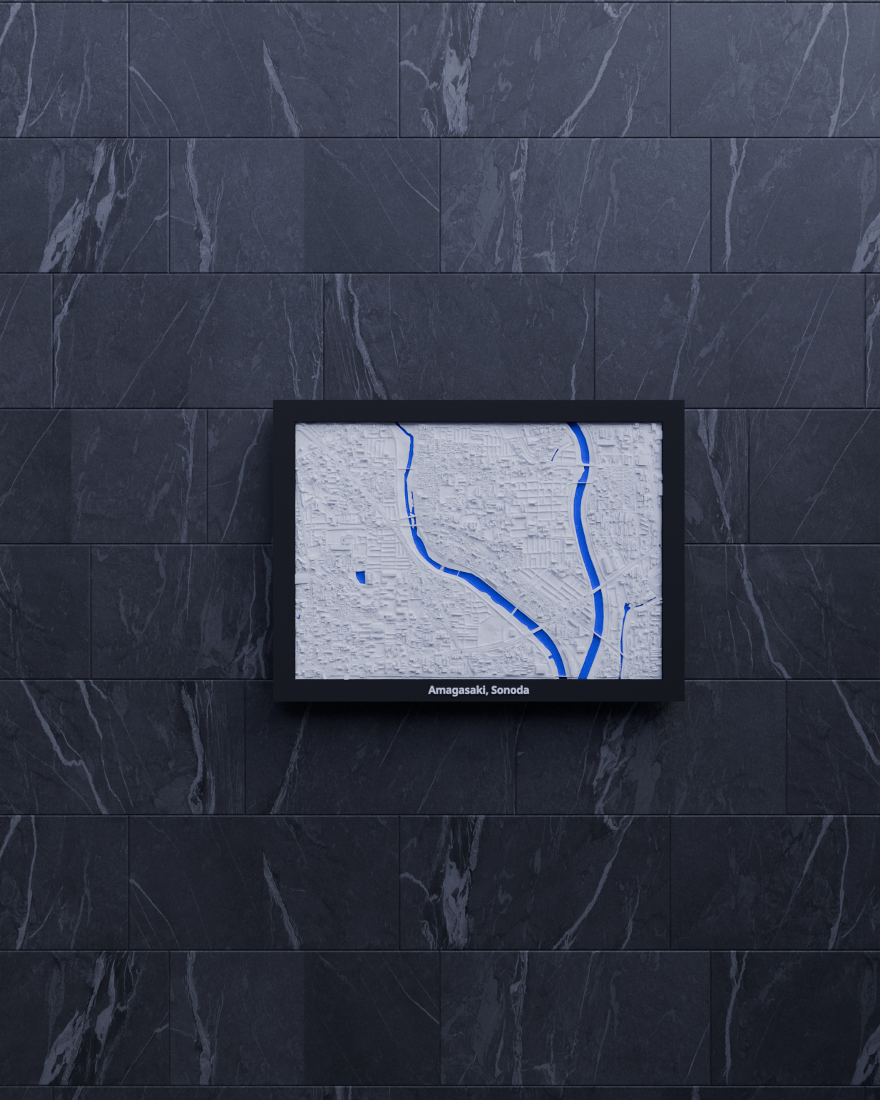 Mô hình thu nhỏ địa hình Amagasaki, Sonoda (Nhật Bản) dựng từ dữ liệu địa lý, tái hiện terrain chân thực. Kích thước 170.5 × 119.5 mm, có nhiều lựa chọn frame kèm lỗ treo, hợp trưng bày, học tập hoặc làm quà.