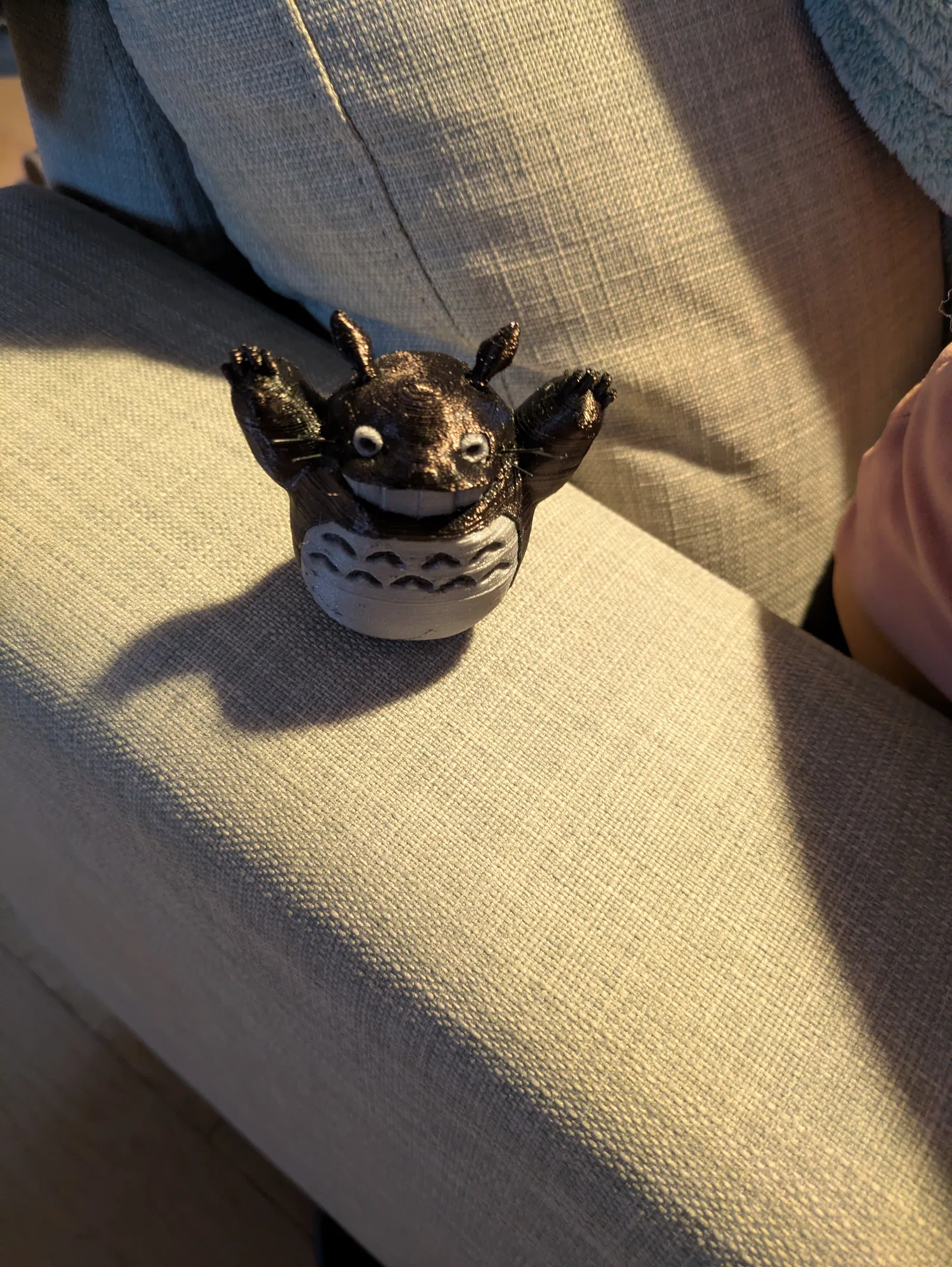 Mô hình Totoro từ phim My Neighbor Totoro của Studio Ghibli, bản gốc cao 100mm và có thêm phiên bản 75mm. Có thể in nguyên khối rồi sơn, in tách rời từng phần rồi dán lại, hoặc in dạng dual extrusion/MMU với hai màu. Phần râu chỉ là các đoạn filament nhỏ, hơ nóng rồi gắn vào các lỗ có sẵn. Sau khi gắn, bẻ nhẹ sợi filament hướng ra phía trước.