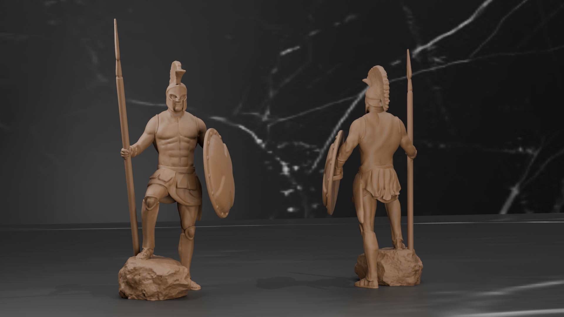 Mẫu 3D Chiến Binh Spartan cầm giáo và khiên, phong cách chiến binh Hy Lạp cổ. File in cần supports; bạn có thể dùng auto tree supports trong Orca rồi tinh chỉnh lại cho phù hợp với máy in của mình.