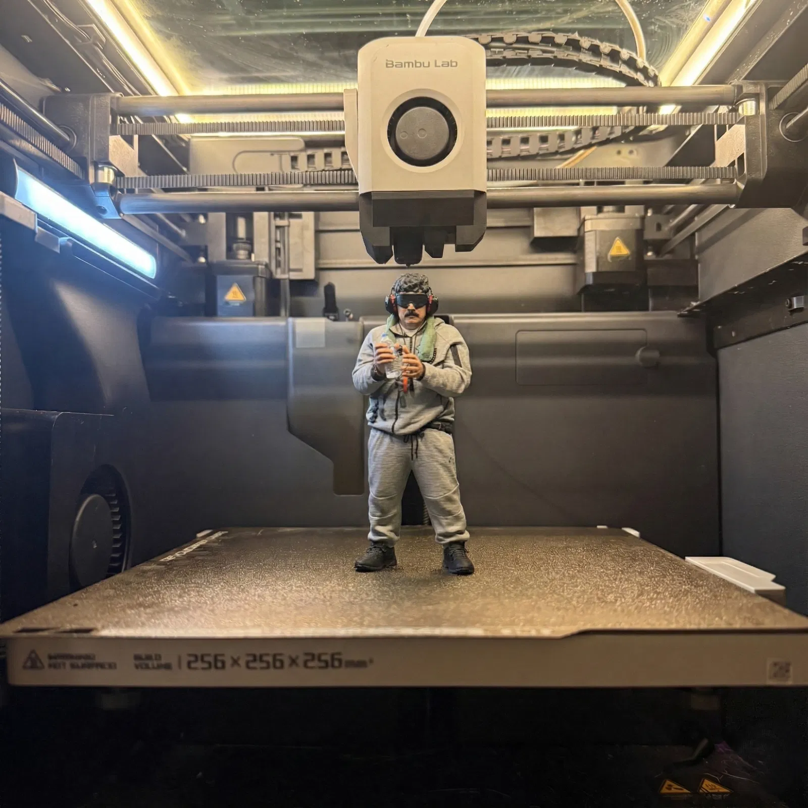 Đây là một mô hình châm biếm được làm rất chi tiết, tái hiện khoảnh khắc “bị bắt”, với bộ tracksuit xám đặc trưng, tai nghe tactical và một chai nước.