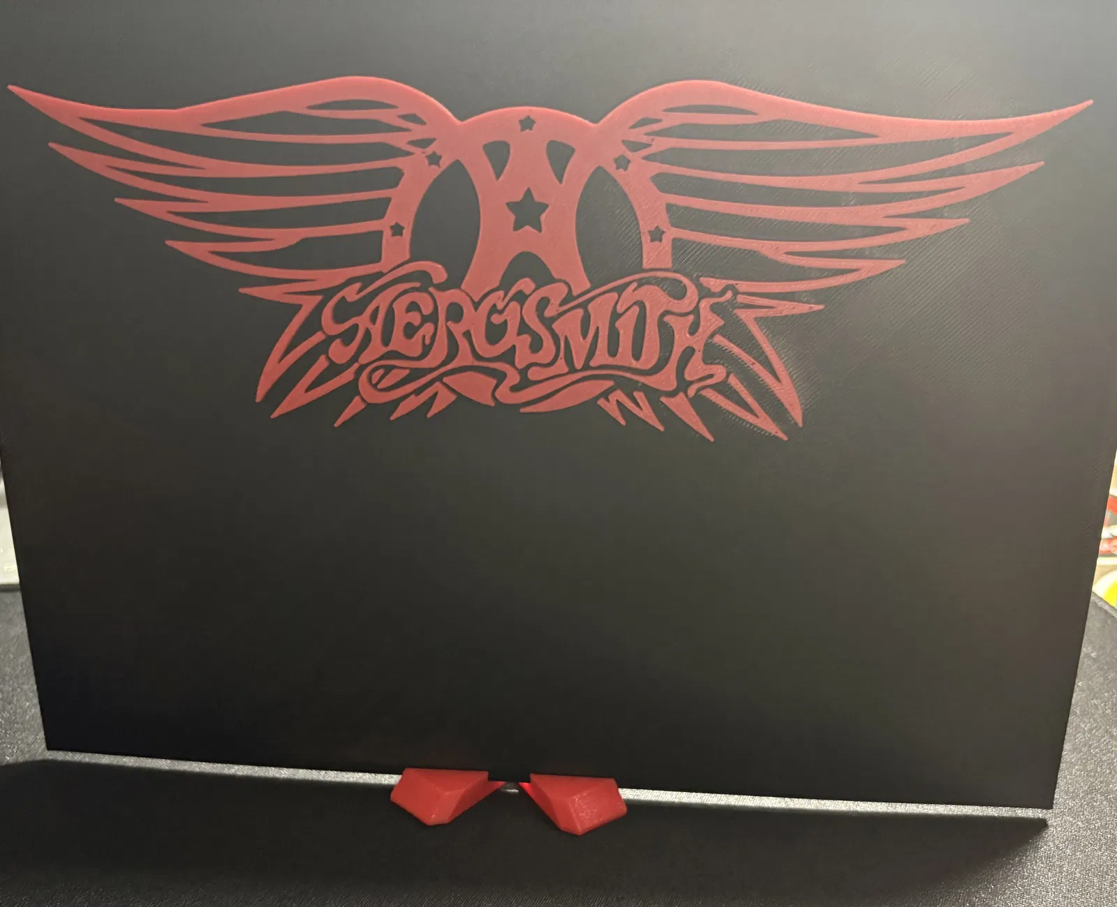 Mẫu 3D bìa album Greatest Hits của Aerosmith (màu đảo ngược), kích thước 9'' x 9''. Có thể in không cần multi material bằng cách thêm pause để đổi filament giữa chừng. Có kèm mẫu stand/đế trưng bày.