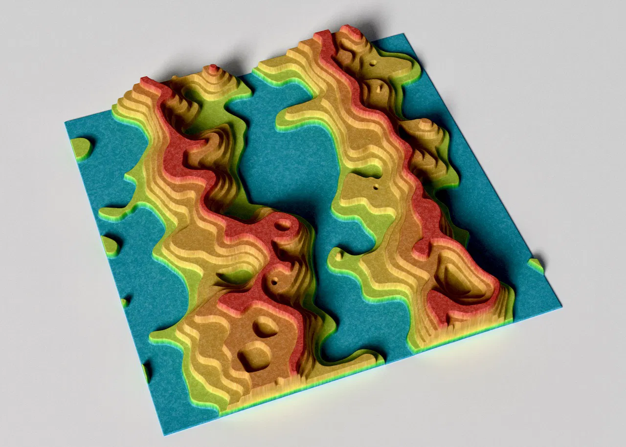Mẫu điêu khắc fractal kiểu “Dual Terraced Ridges”, dùng làm decor treo tường, đạo cụ sci‑fi hoặc terrain prop cho tabletop/RPG. Thiết kế in không cần supports; nên in ở độ phân giải cao và kích thước lớn để ra chi tiết đẹp.