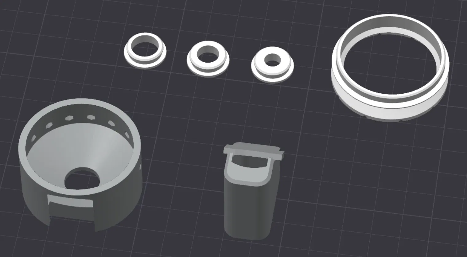 Adapter máy hút bụi gắn với máy khoan để hứng bụi khi khoan tường/trần (đá, bê tông). Thiết kế nhỏ gọn để dễ cầm và giữ độ sâu khoan. In PETG cho thân, TPU90A cho gioăng; phù hợp dùng gia đình.