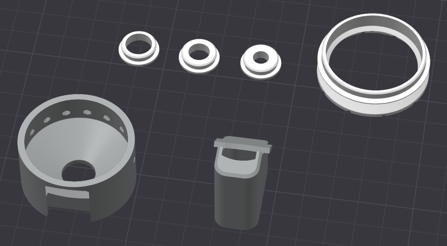 Các phần chính được in bằng PETG, còn phần gioăng/sealing màu trắng in TPU90A với nozzle 0.4 mm.