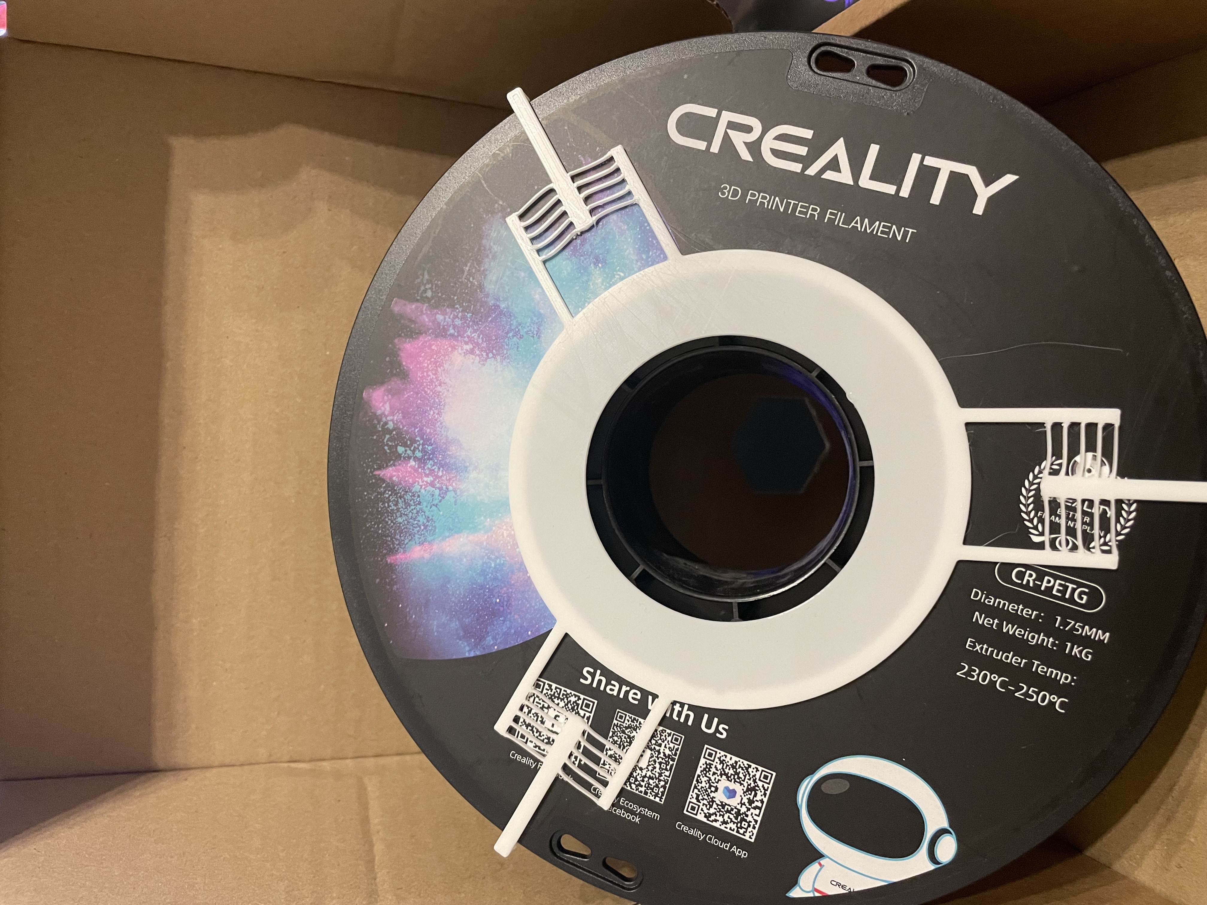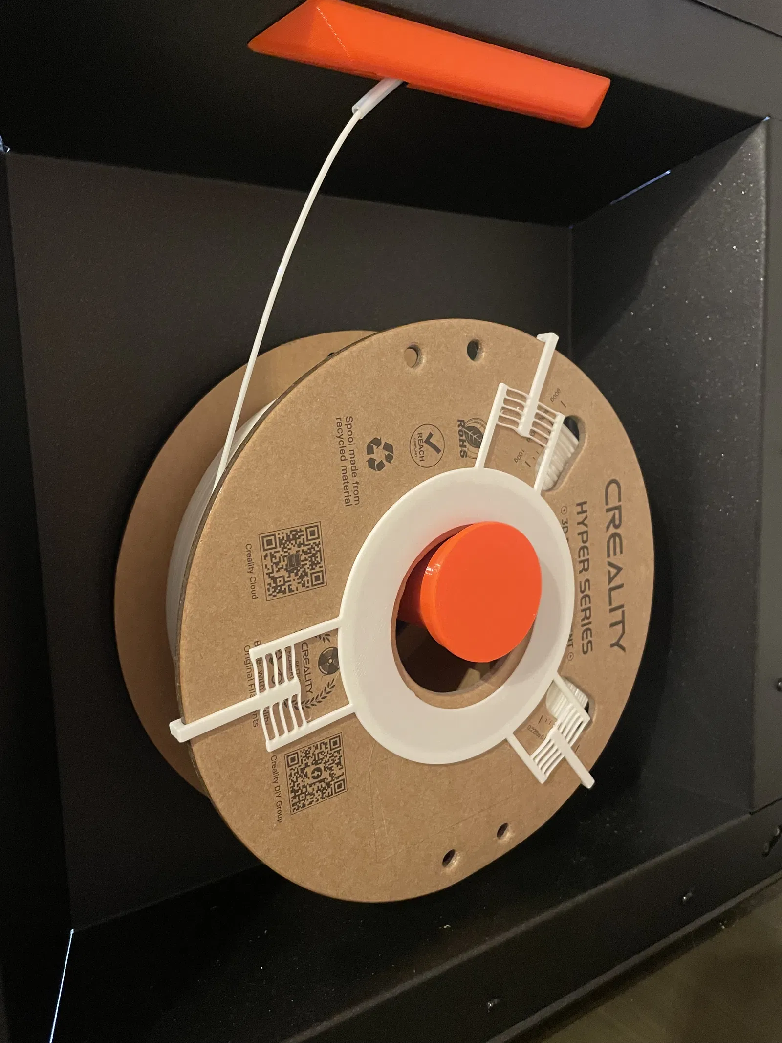 Nhờ vậy có thể kẹp được cuộn filament của nhiều hãng khác nhau (ví dụ: Prusa, Sunlu, eSun, v.v.) theo kiểu dùng chung và không cần dán keo.