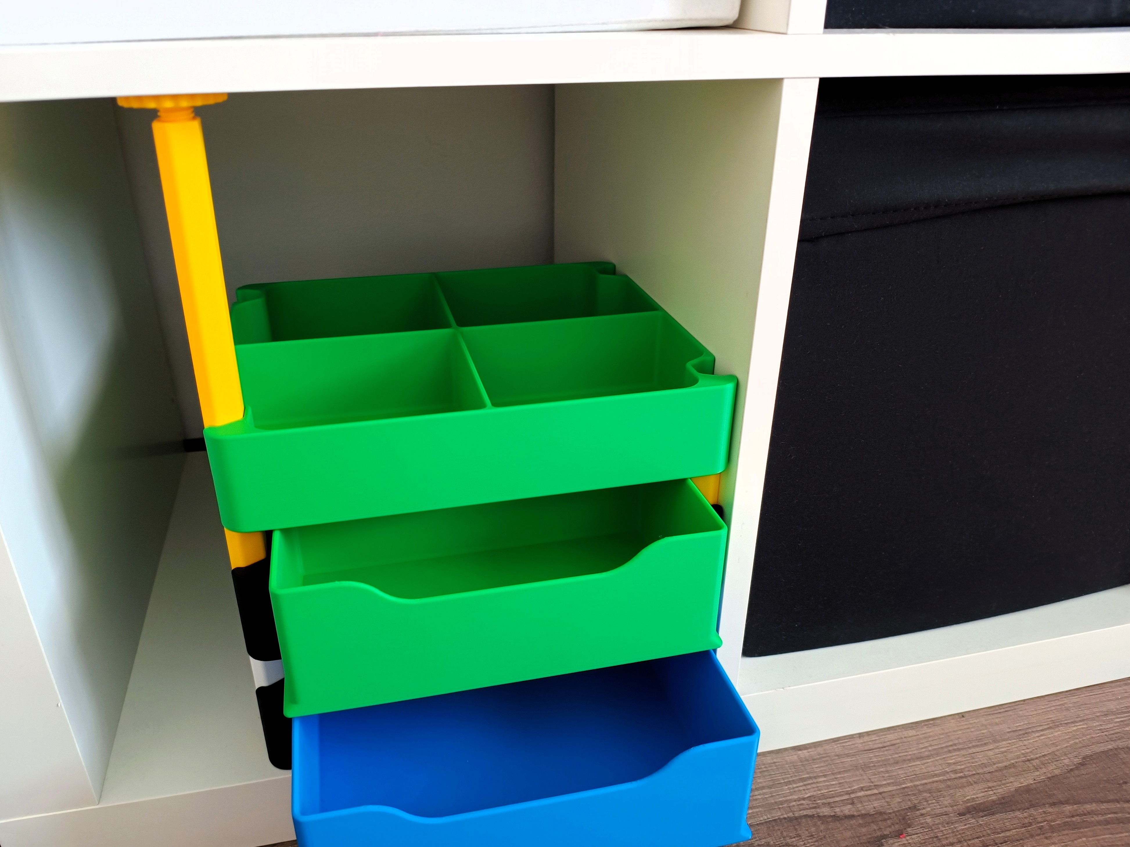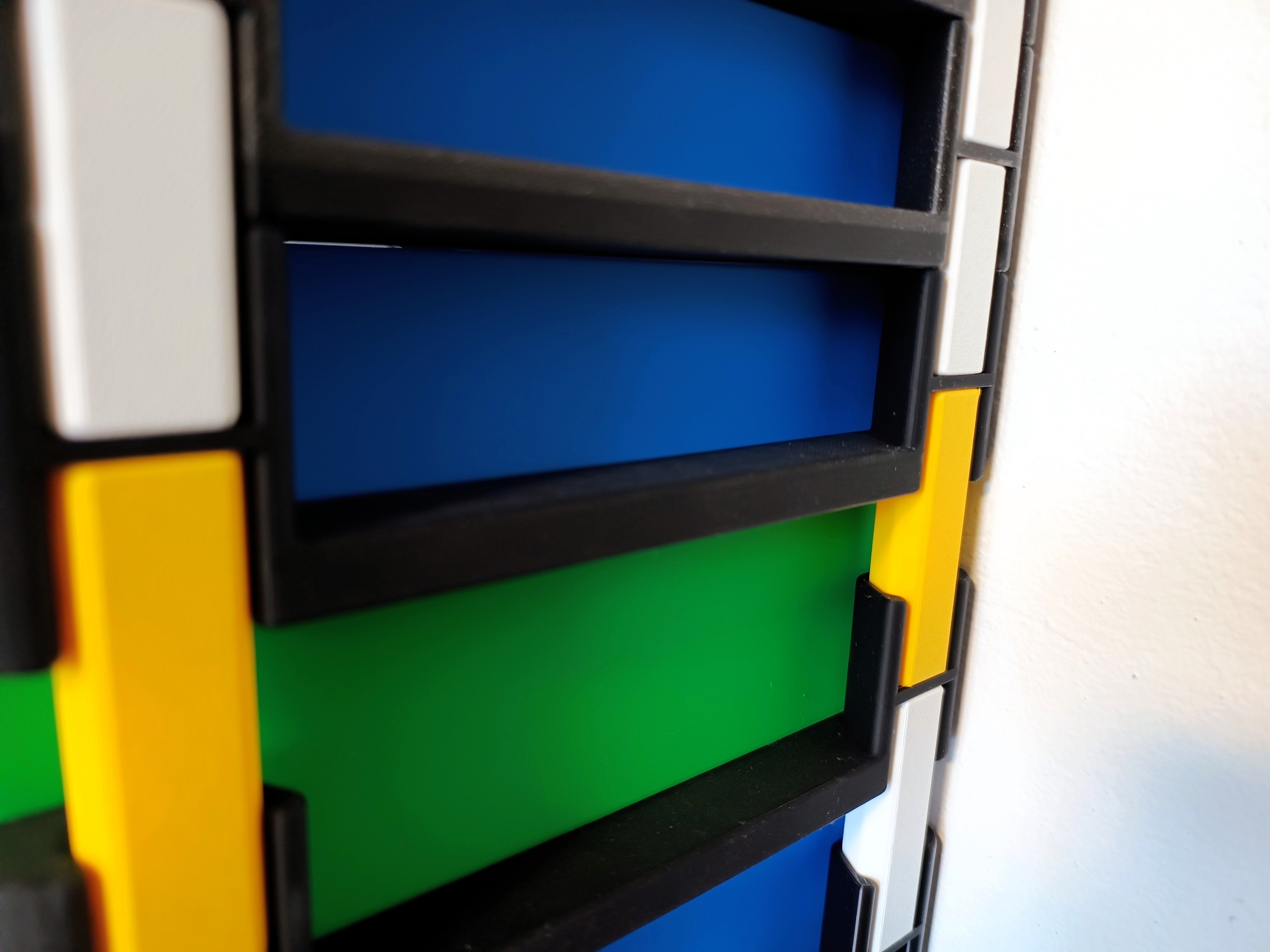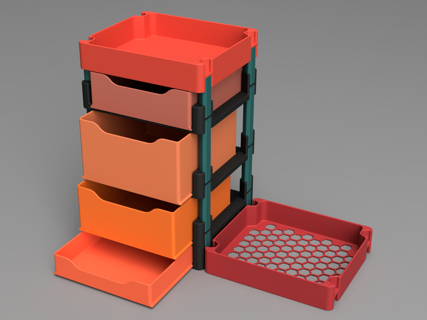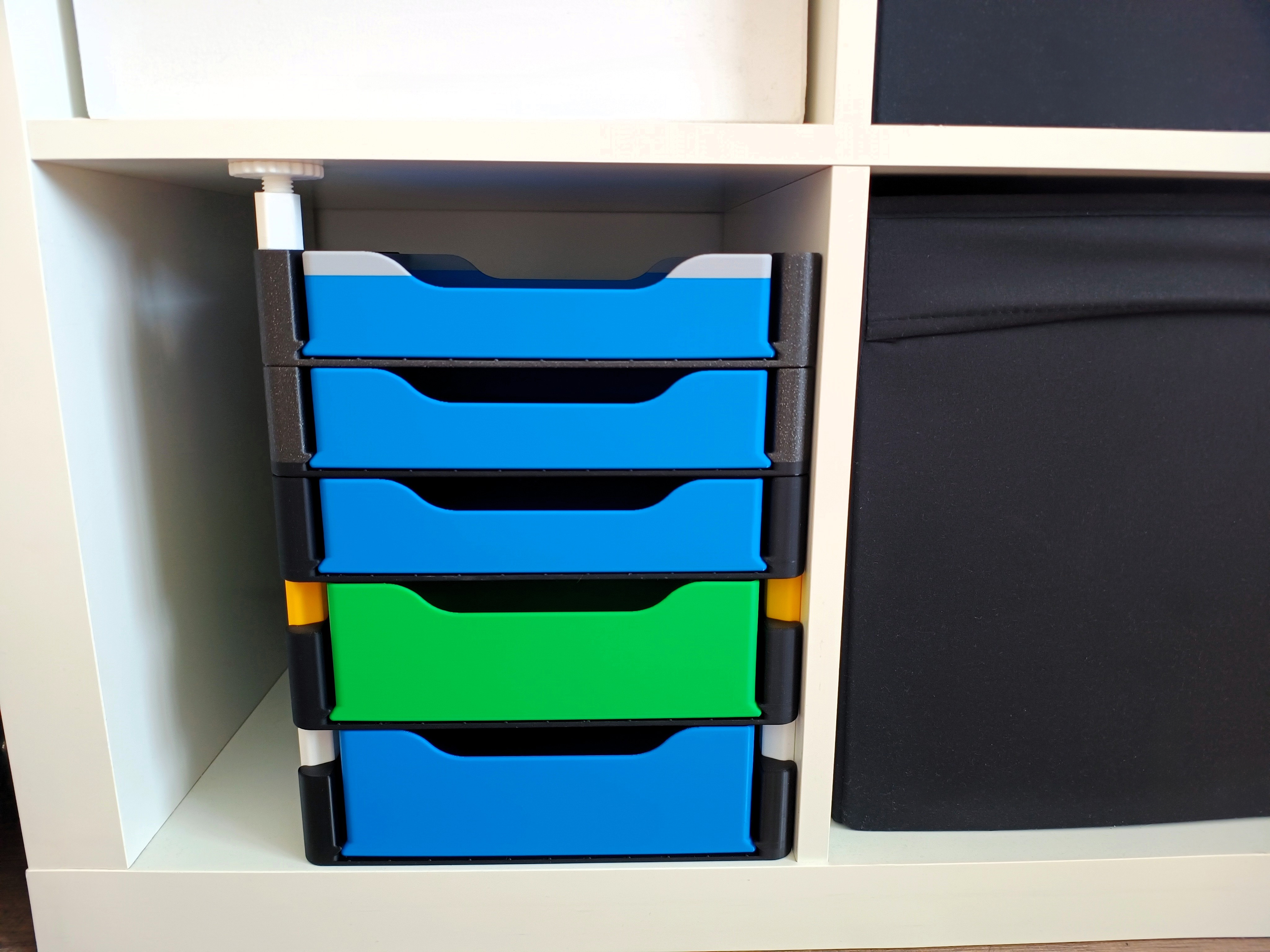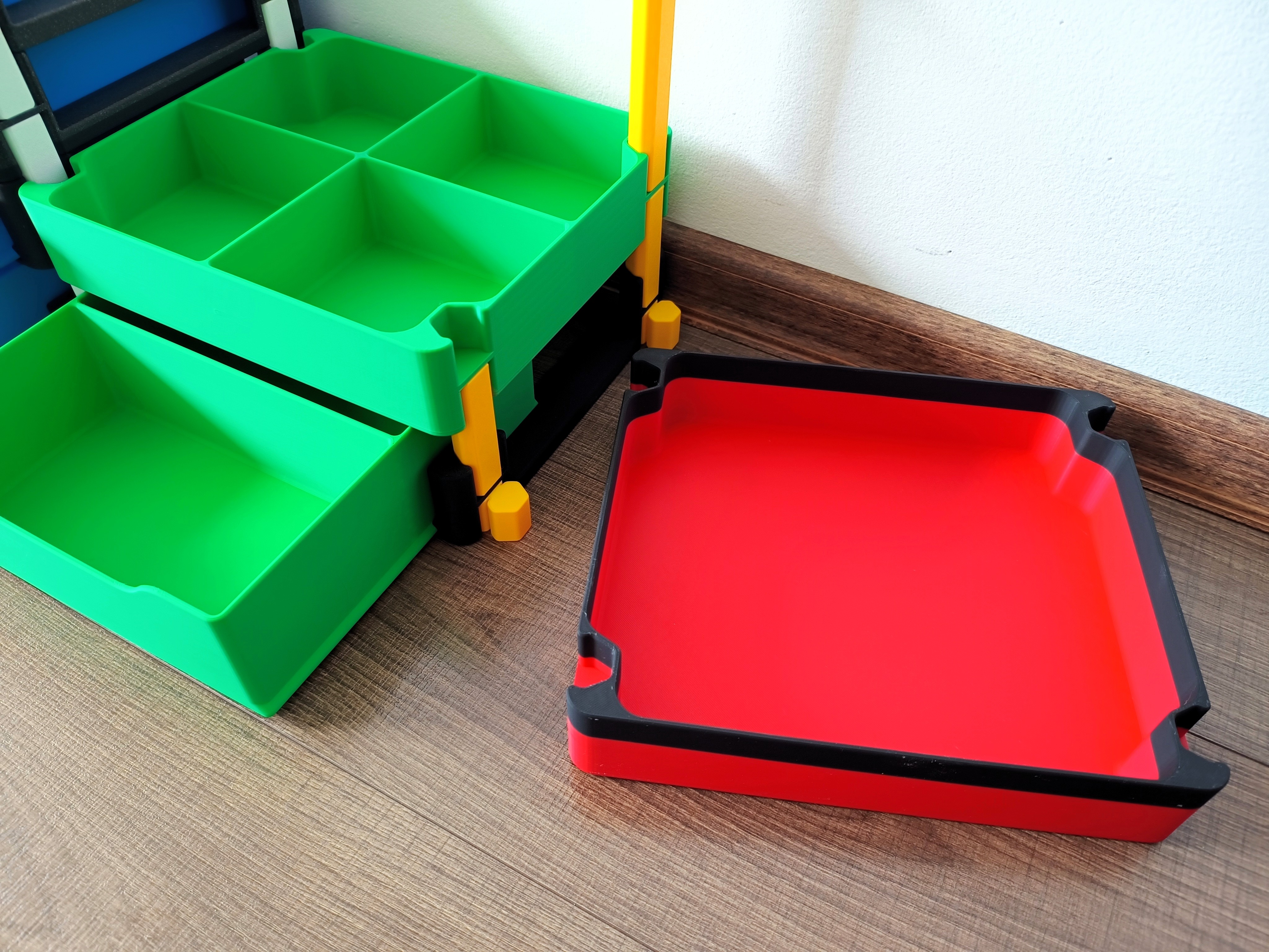 Hệ hộp lưu trữ xếp chồng đa năng với đáy đặc/đục lỗ và ngăn kéo, phù hợp nhà ở, văn phòng hoặc xưởng. Bản mới giữ thiết kế cũ nhưng đổi kích thước, rộng 250 mm; có vách ngăn chia 2/4.
