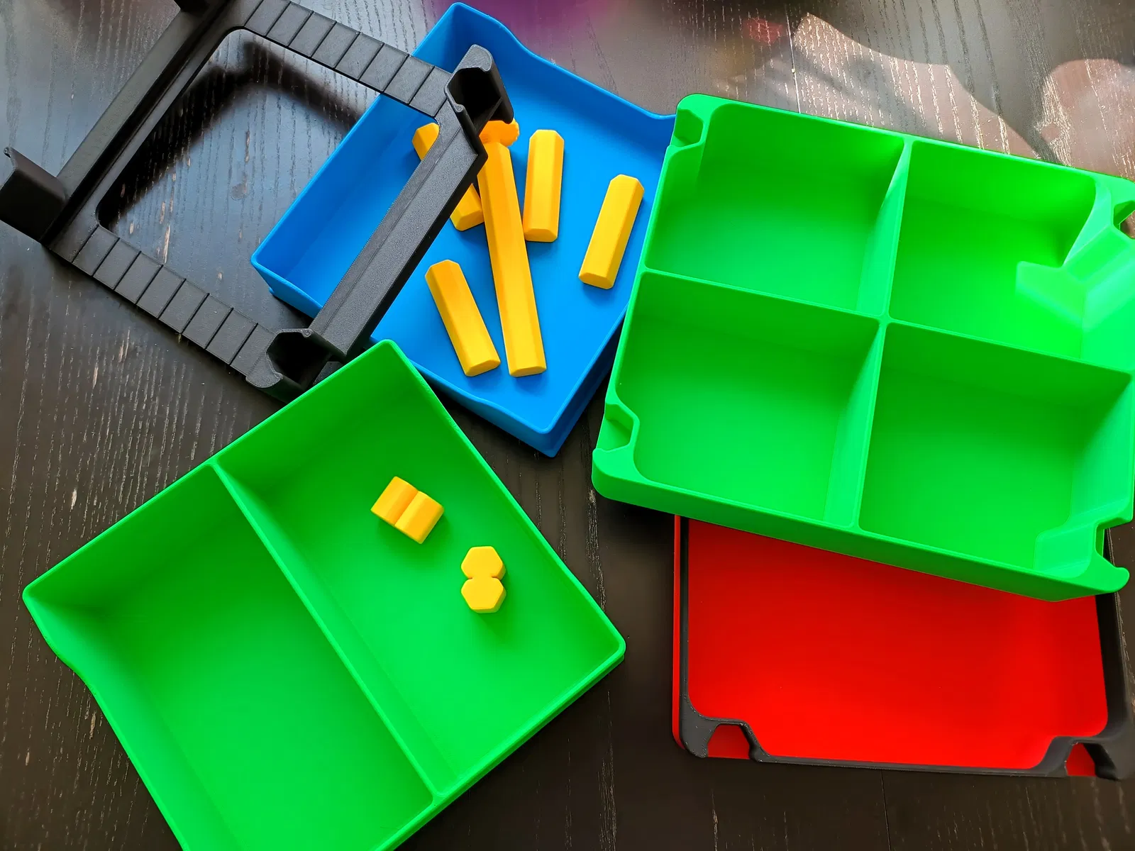 Các vách ngăn (dividers) được tích hợp vào hai cạnh thẳng, giúp chia hộp và ngăn kéo thành 2 hoặc 4 ngăn.