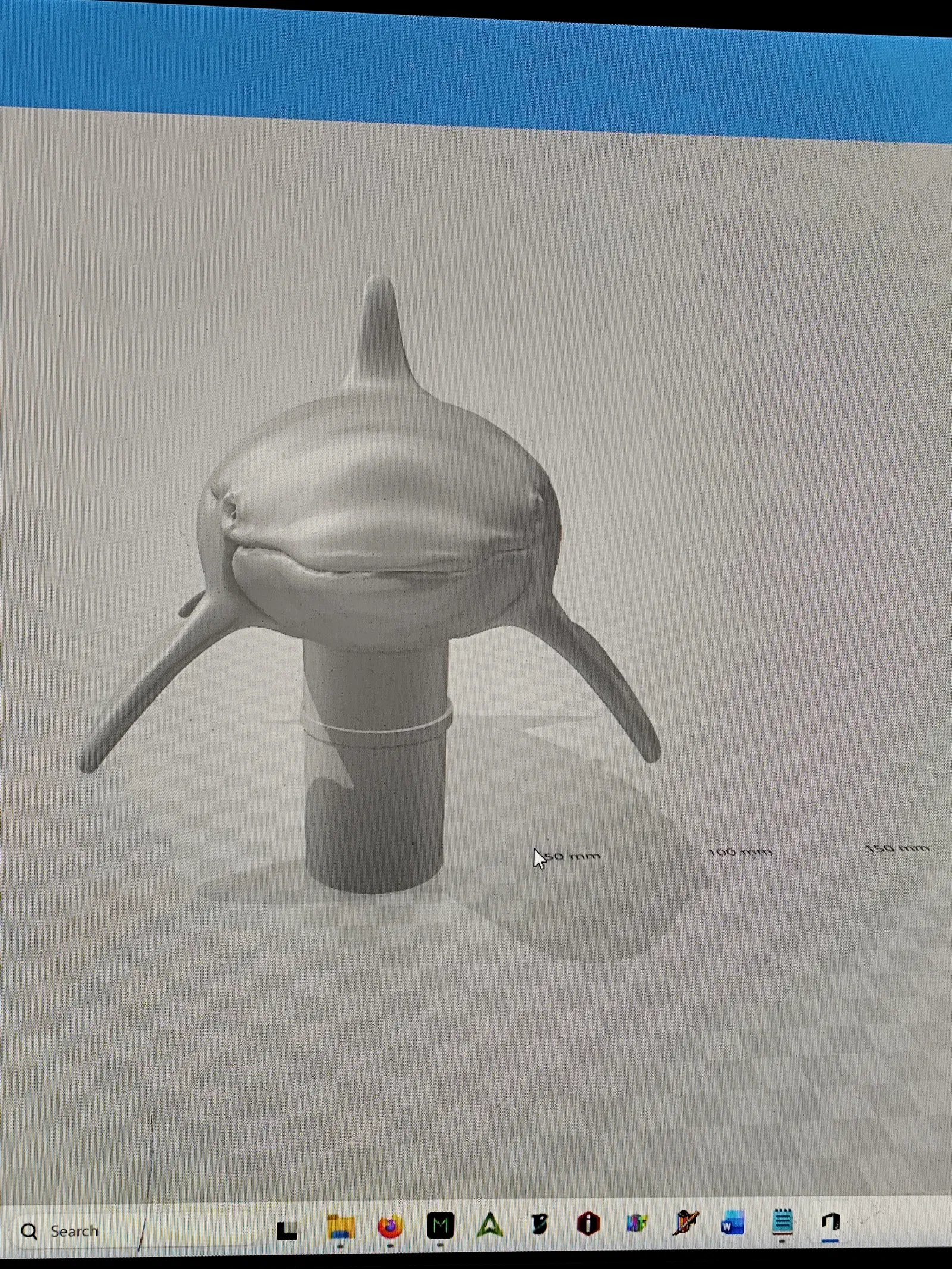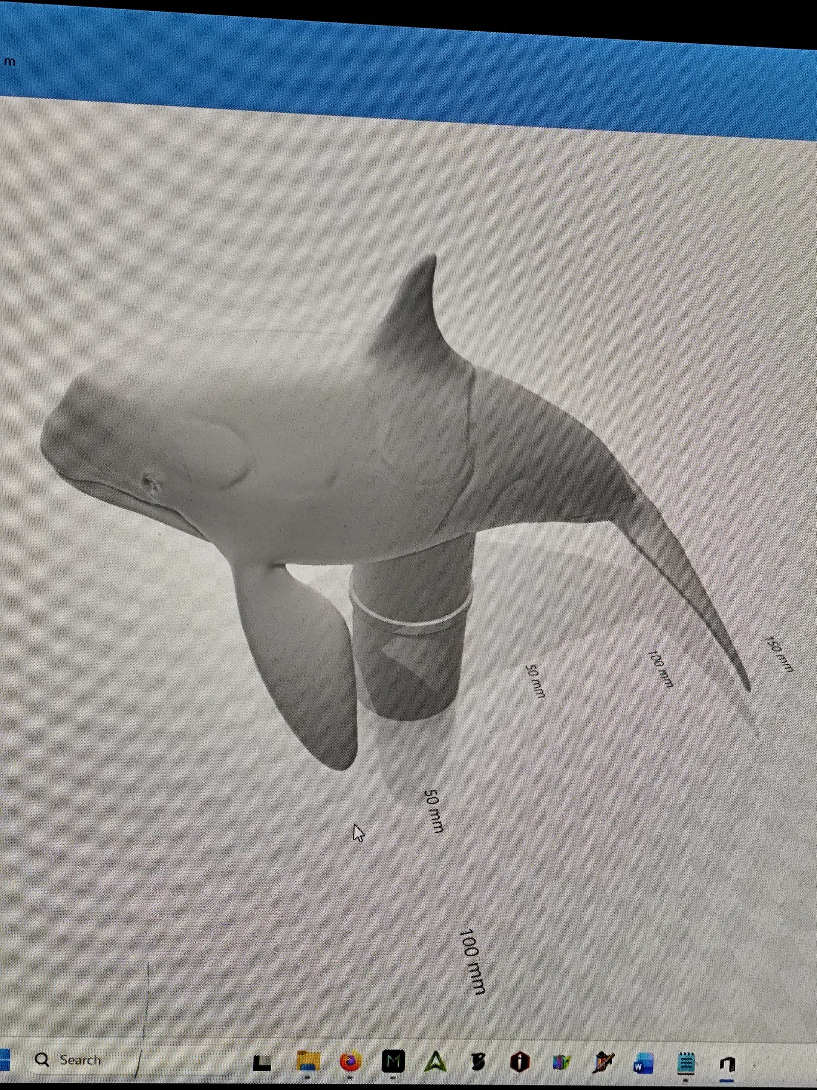 Mẫu orca adornnment để gắn lên cuộn giấy vệ sinh. Tác giả thêm một vòng quanh phần cuống để lúc lắp vào lõi cuộn giấy, hạn chế làm gãy vây của orca khi thao tác.