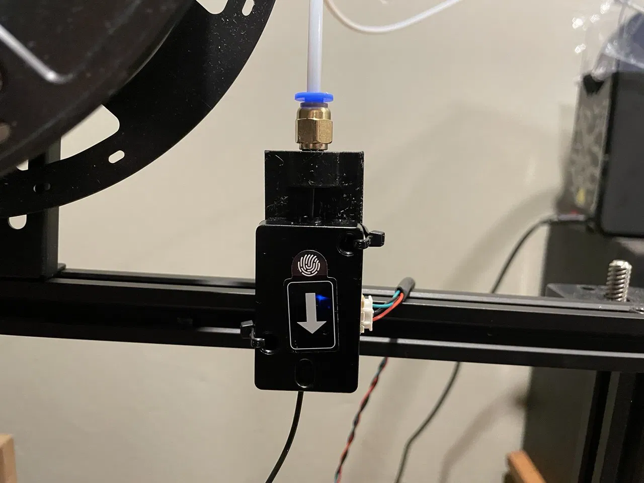 Mình thiết kế để có thể tự ren (self-tap) một pneumatic fitting vào, hoặc bạn cứ luồn filament qua lỗ chính cũng được.